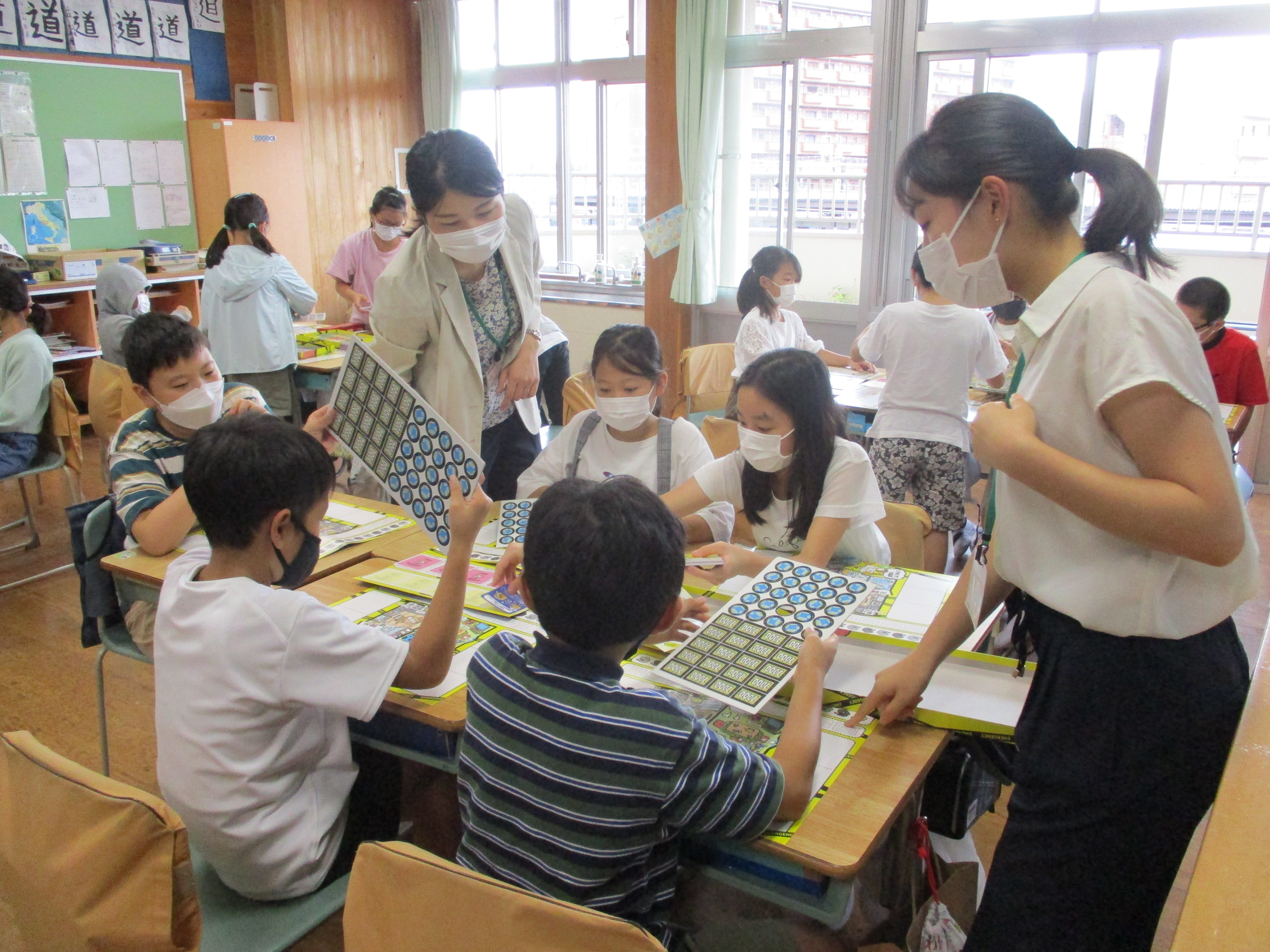 このボードゲームは、CO2の発生を抑える取組が表されたカードを選択したり、投資してCO2を抑制する機器を整えたりしていくもので、それ