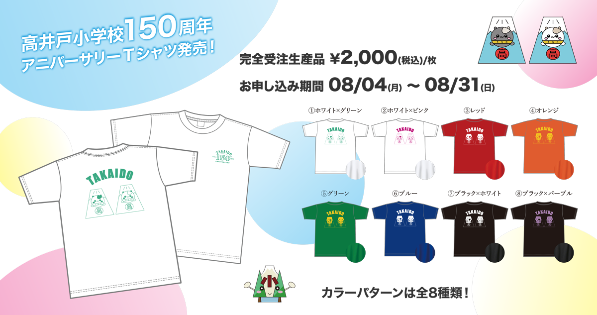 ※ Tシャツの売上利益は協賛金として寄附され、子どもたちの学校生活や地域運営学校である高井戸小学校の学びの環境を豊かにするために充てられます。