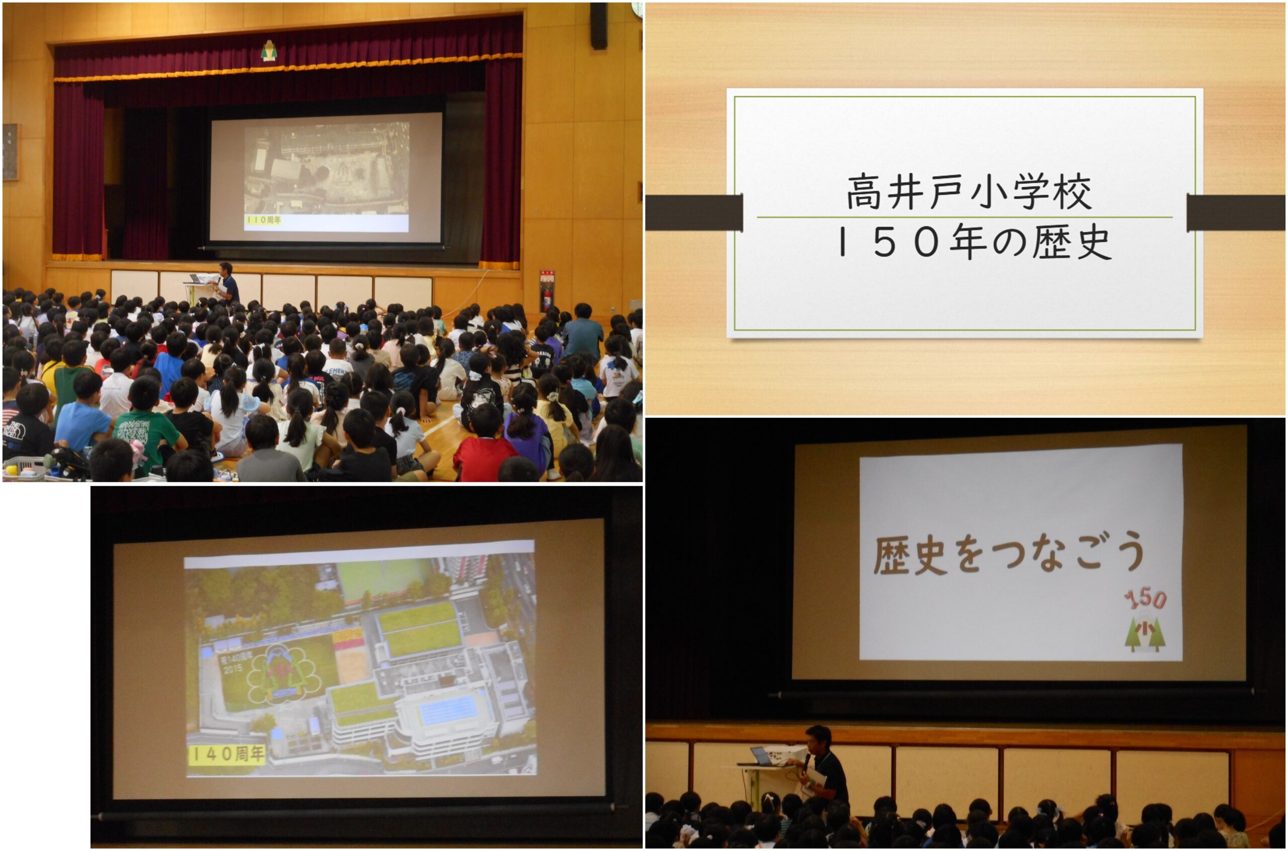 ㉚ 令和7年9月16日(火) 全校朝会の時間に、高井戸小学校150年の歴史を学んできました。その最終回です。今回は、平成時代について、写真をもとに振り返りました。最後に「歴史をつなごう」というメッセージが子どもたちに伝えられました。150年の歴史の1ページを、今、書き加えています。
