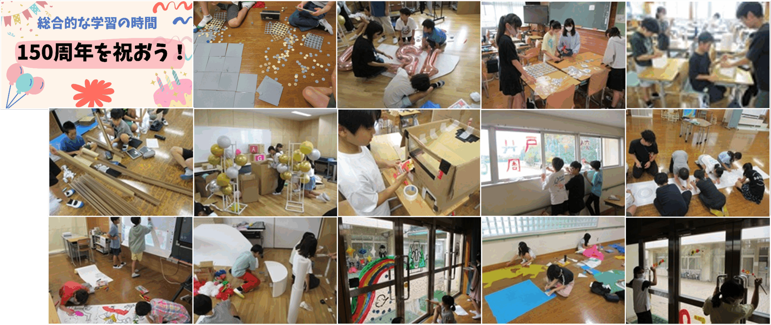 ㉘ 令和7年9月9日(火) 周年行事に向けた6年生の取組の様子です。具体的な製作活動が進み、カラフルになってきました。(画像の解像度を落としているので、全体の雰囲気だけお伝えできればと思います)