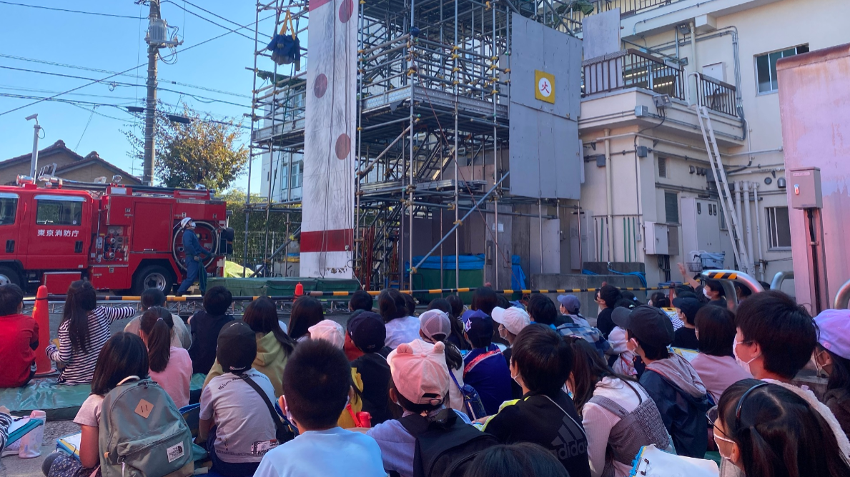 消防設備や救助訓練の見学、消防士の方へのインタビューなどを通して、火事から地域の安全を守るはたらきについて学びました。熱心に話を聞いたり、分かったことをメモしたりする子供たちの姿が見られました。