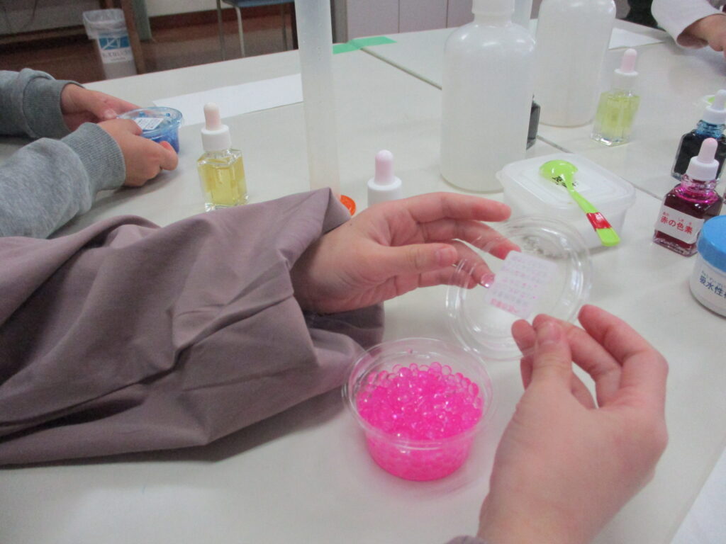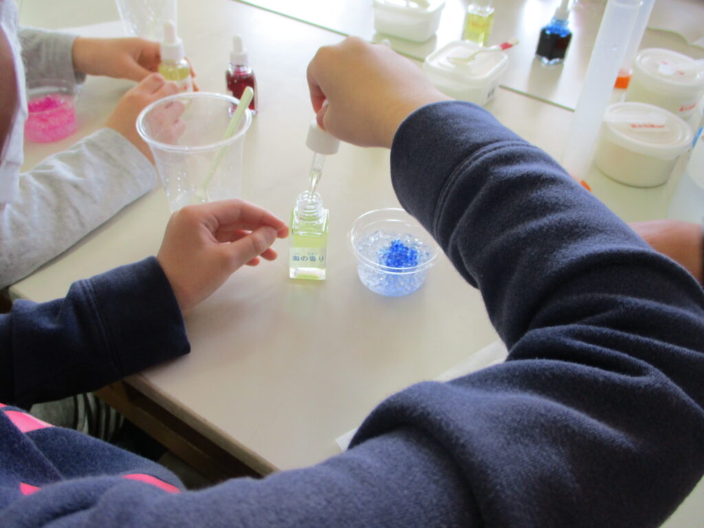 科学教室「作って遊ぼう」 投稿日 2023年3月16日 著者 takaido-shokuin カテゴリー 2年生 カテゴリー お知らせ カテゴリー 未分類 ディレクトフォースさんによる科学教室がありました。話をよく聞き、実験をしました。 自分で選んだ色素や香りを組み合わせて 「吸水性樹脂」に足していきます。 オリジナルの「かおりの粒」が完成!! とても丁寧に教えていただき、楽しく学びながら実験することができました。香りをお家で存分に味わってくださいね。