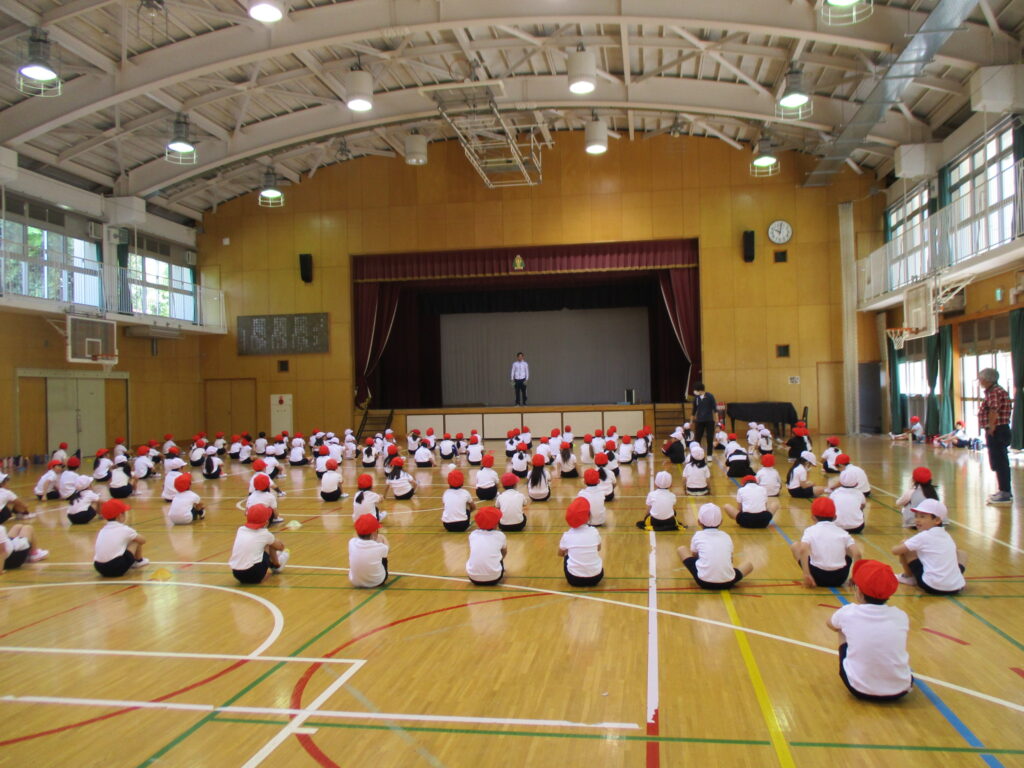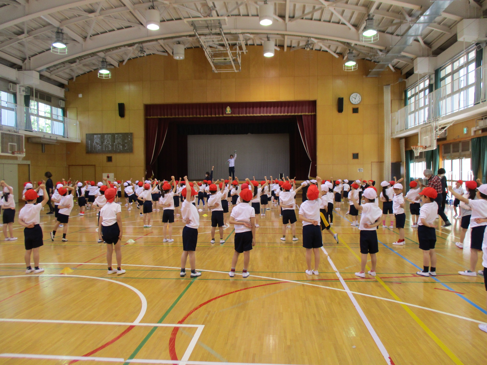 GW明けから練習が始まりました。先生たちが一つ一つの動きをステージ上で大きく演じながら指導しています。子どもたちも一生懸命覚えています。