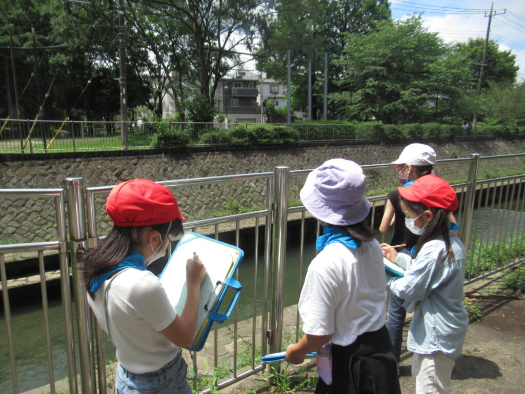 今、社会と総合の学習で取り組んでいる「杉並の自然」「杉並のみりょく」を伝えるために、目と耳で感じ、聞いたことや体験したことをまとめるために、メモを取りながら進みました。