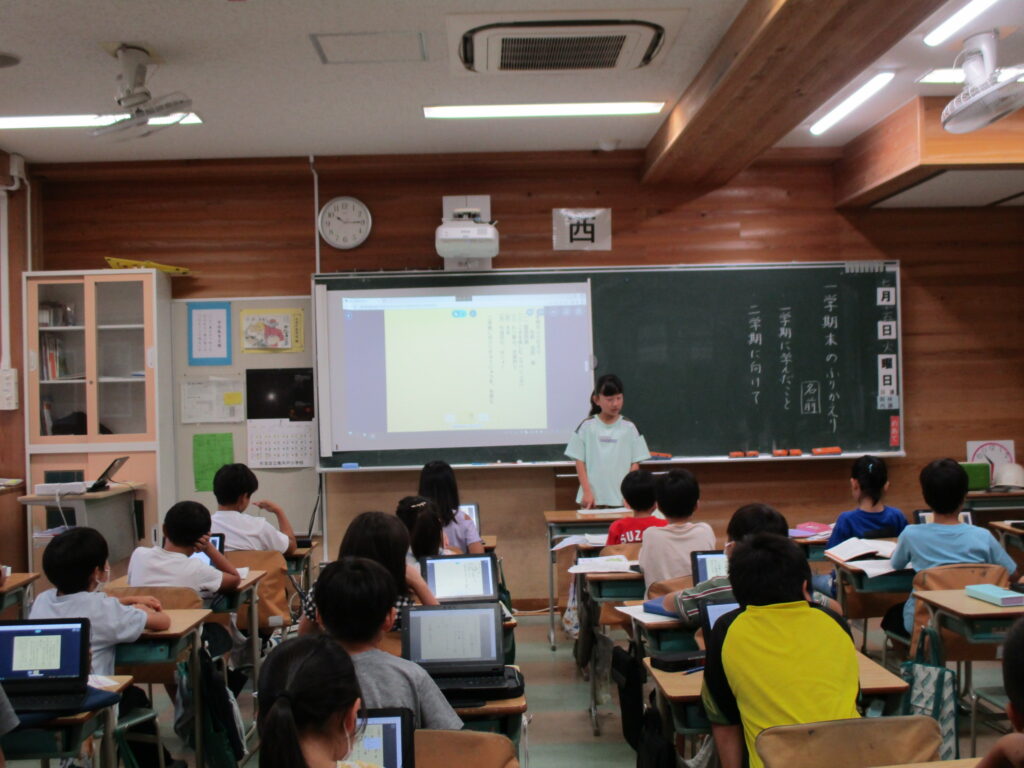 1学期の振り返りをTBロイロノートに打ち込み発表していました。