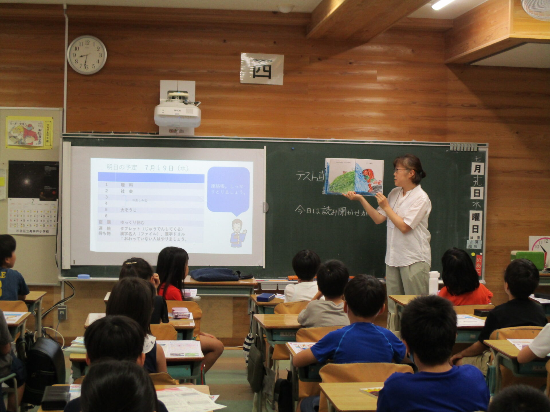 7月19日本校の読み聞かせボランティアによる1学期最後の読み聞かせでした。子どもたちは本の世界に引き込まれていました。