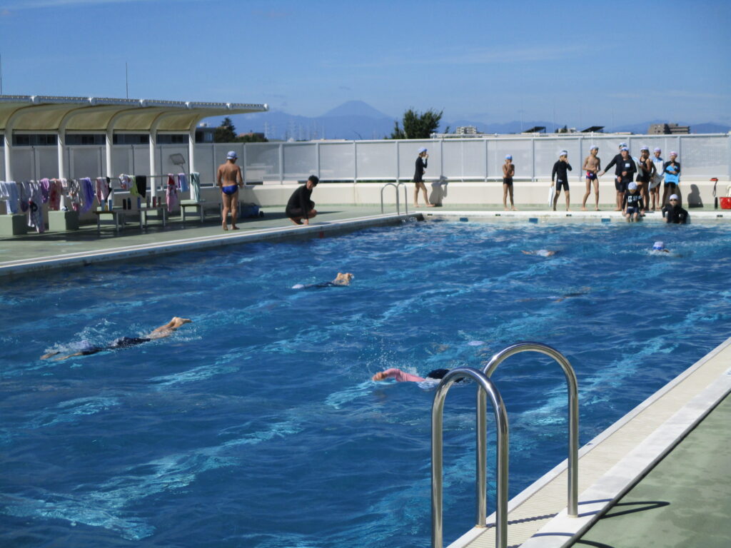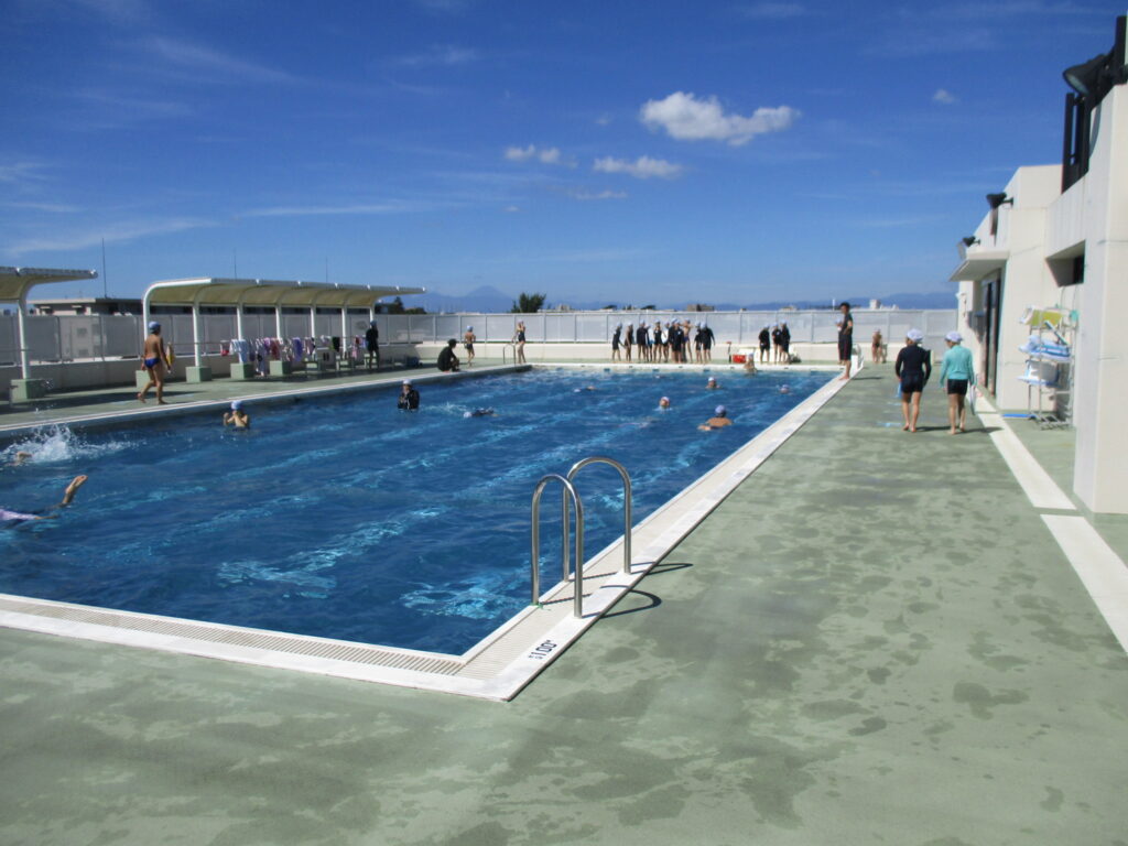 始業式の30日(水)、31日(木)は、二学期の目標を立てたり、係活動や座席を決めたり、学期初めの活動を行いました。また、11日からは富士移動教室があり、その準備も頑張っている5年生です。今日は、青空の下、久しぶりに水泳授業を行いました。みんな気持ちよさそうに泳いでいました。