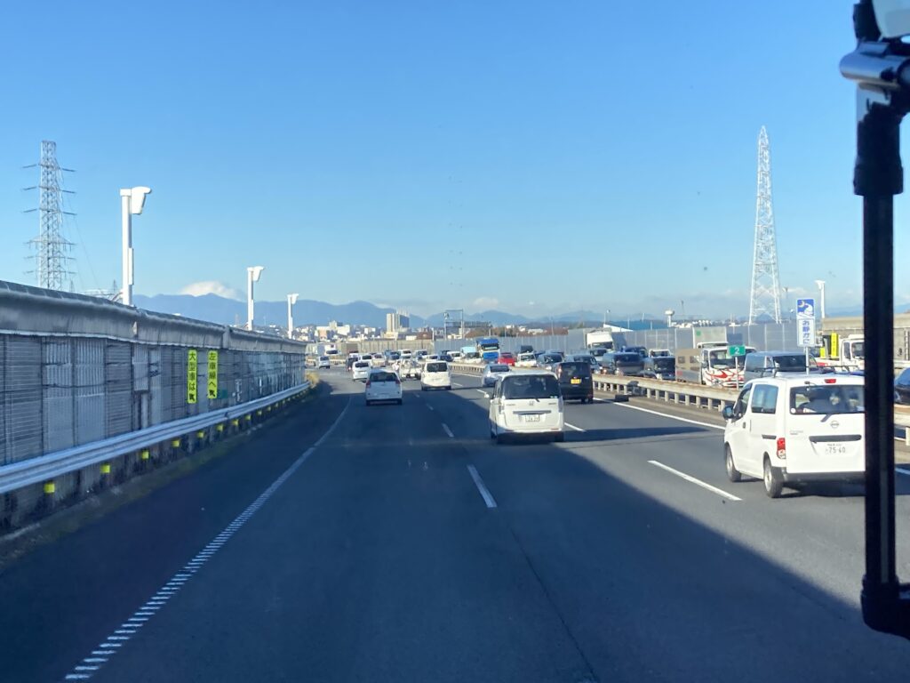 8時ちょうどに東名高速に乗りました。今は、車は流れています。