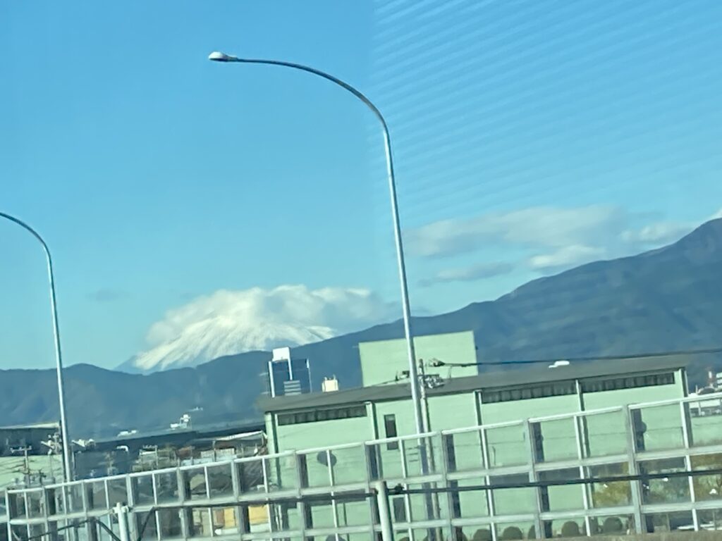 9時に海老名サービスエリアでトイレ休憩をし、次の休憩場所の道の駅天城越えに向かいます。富士山が見えて来ました。