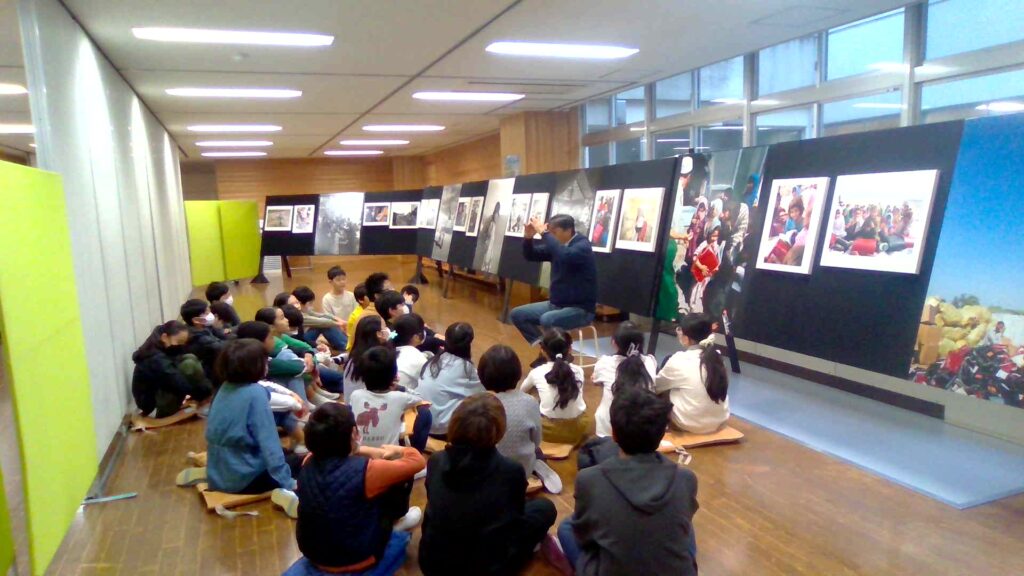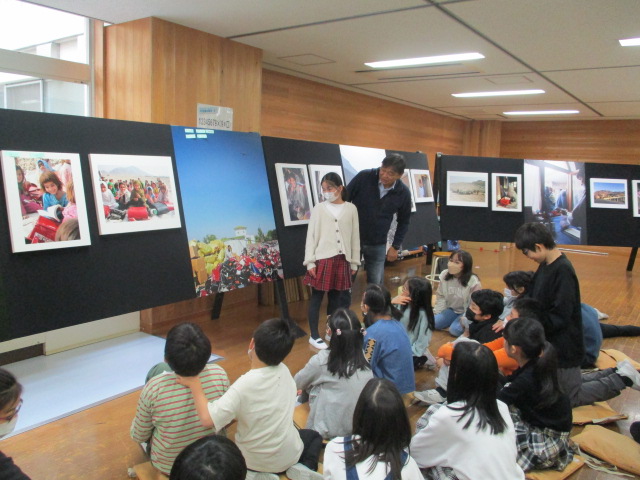「ランドセルは海を越えて」の著書で写真家の内堀タケシさんをお招きし、今年もランドセルプロジェクトを行いました。内堀さんのお話と素敵な写真からSDGsにつながる多くのことを学習できると期待していました。一枚一枚の写真を前に、自分の選んだ写真について内堀さんが話してくれるお話にどの子も興味津々で話を聞いていました。一人ひとりの中に、新しい発見や自分たちの生活を見直す目、今までとは違った見方が生まれていることを感じました。