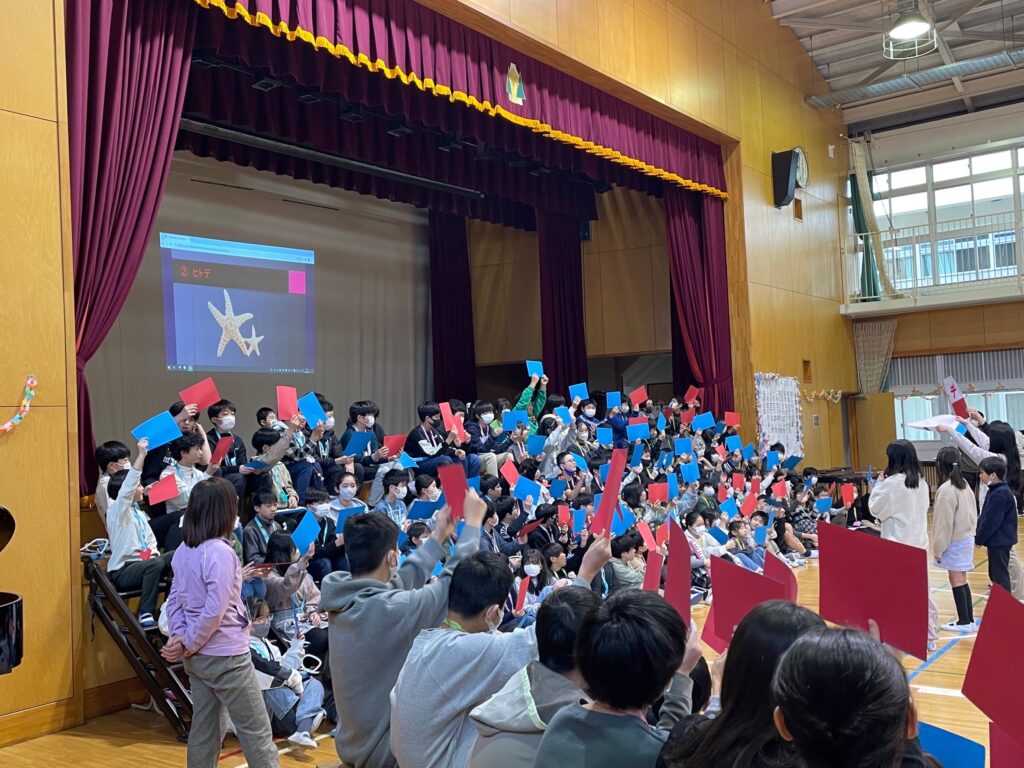 朝の時間から1時間めにかけて実施しました。全校児童が体育館に集まり6年生に感謝の出しものをし、有難うを伝えました。群読、応援エールや踊り、合唱、合奏、クイズなどを披露し合い全員で楽しい時間を過ごしました。6年生、今まで下の学年の子どもたちを大切にし、様々な活動で学校全体をリードしてくれて本当に有難うございました。
