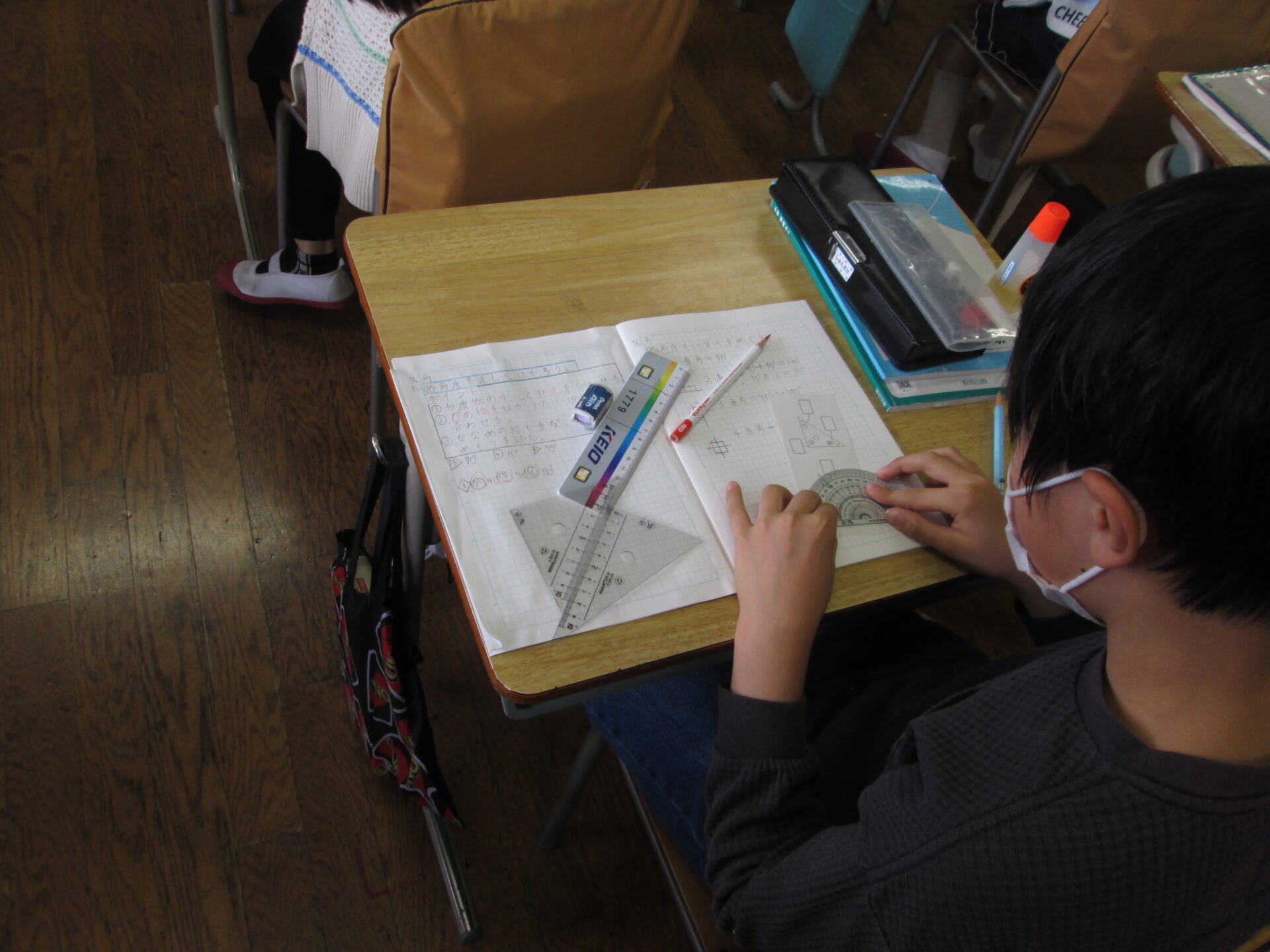 第4学年 算数「角」 投稿日 2024年5月30日 更新日 2024年6月3日 著者 takaido-shokuin カテゴリー 4年生 カテゴリー お知らせ 4年生の算数では、「角」の学習をしています。 分度器を使うのは初めてづす。分度器での角度の測り方を学びました。 「分度器の中心を頂点に合わせる」「0°の線を測りたい辺に合わせる」など測るときのポイントを見つけました。