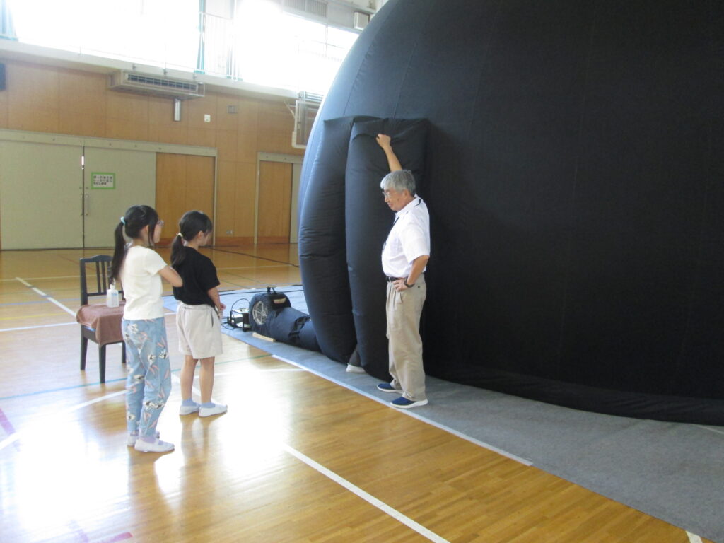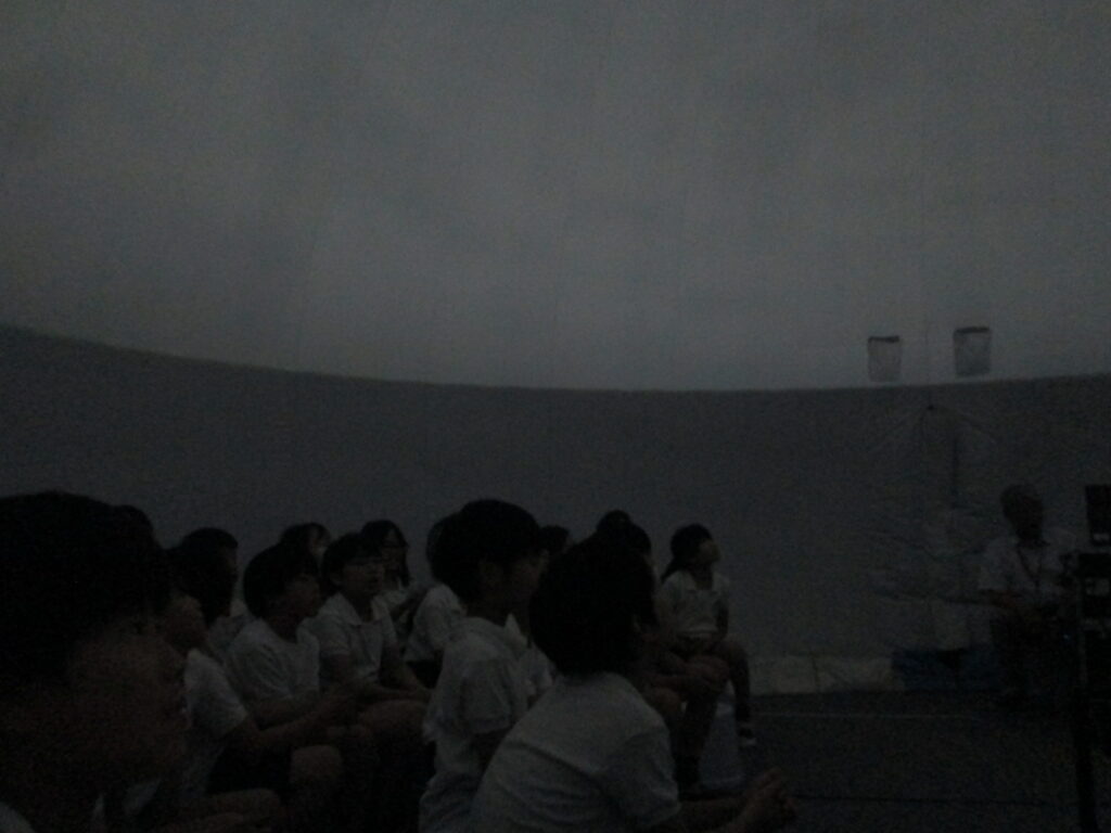 体育館に大きなプラネタリウムが作られ、その中で星や月の動き方や星座について学びました。