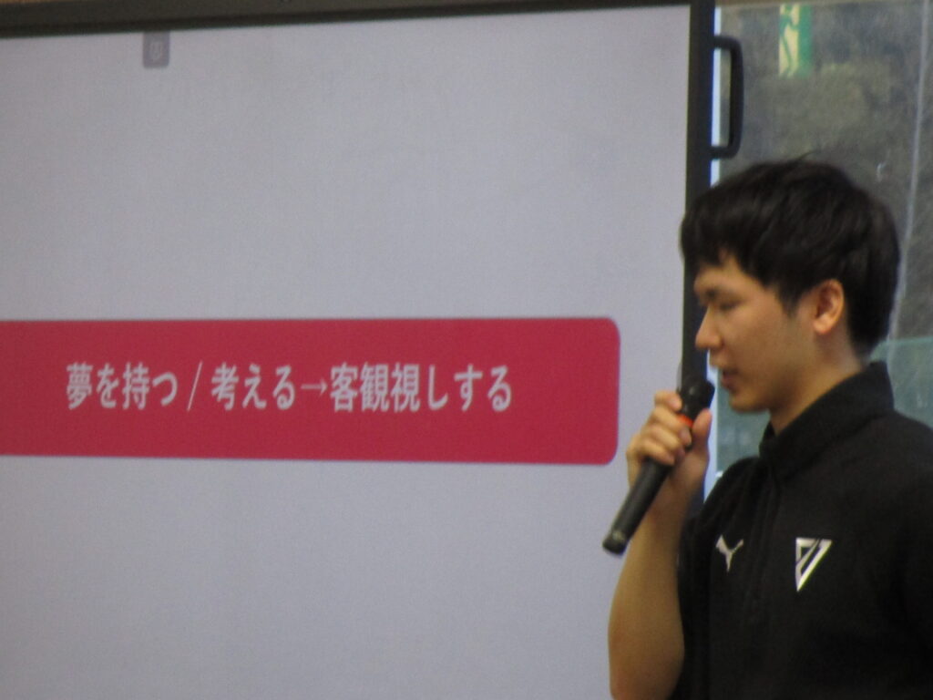自分の夢に向かい、どのように夢に近付き達成すればいいか、しっかり考え、客観的に自分を捉えていくことが、大事だと話されていました。