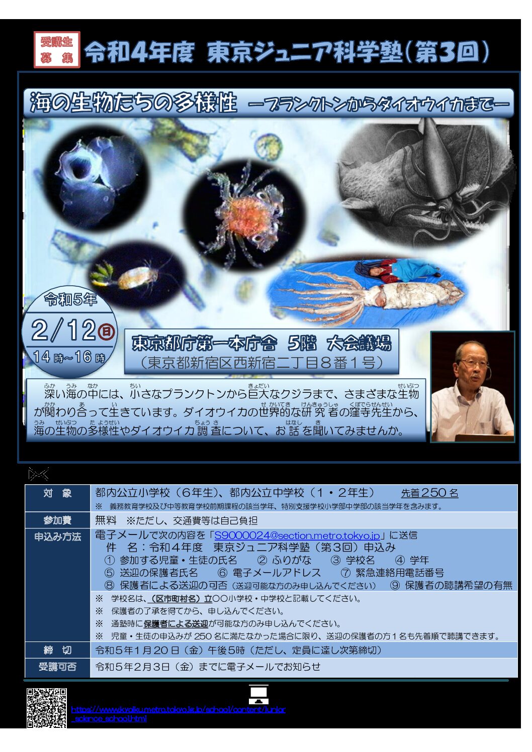 東京ジュニア科学塾(第2回)のお知らせ