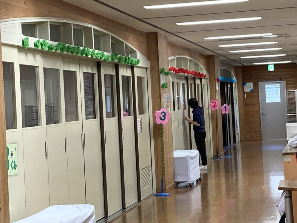 子どもたちは、ドアのある安全な教室に移動し身を守る訓練を行いました。