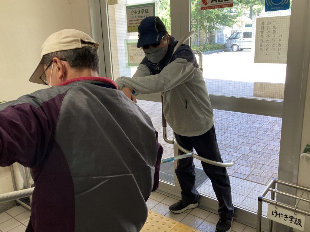 5月9日(火)不審者対応訓練を行いました。不審者役の先生、玄関で不審者を防ぐ主事さん、本番のような訓練を行いました。