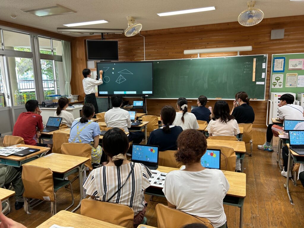 杉並区では、今までの黒板に貼るスクリーンをやめて75インチの液晶ディスプレイを教室に導入しました。TBにつなぎ今までより高度の提示が可能になりました。9月10日の放課後、この液晶ディスプレイによる様々な使用方法について、先生たちは業者さんから学びました。