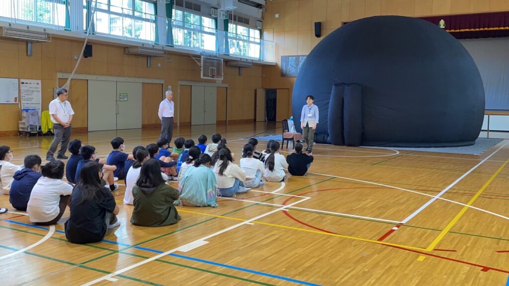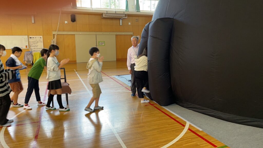 10月10日(火)、体育館に済美教育センターの科学班からプラネタリウムがやってきました。本格的な天体の学習に子どもたちはワクワクしながら臨んでいました。