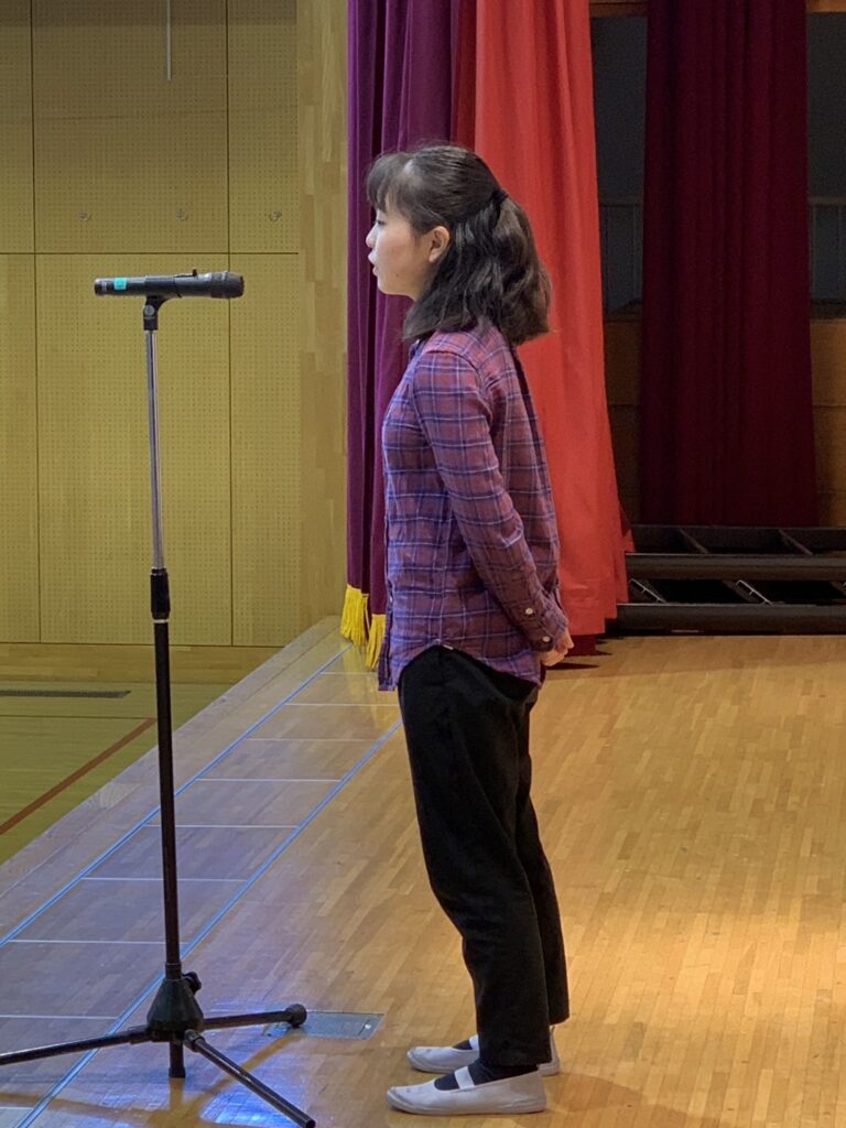 児童2人よる代表の言葉の後、元気に校歌を歌いました。教室に戻り、担任の先生から通知表をもらって下校しました。来年がよい年になりますように。