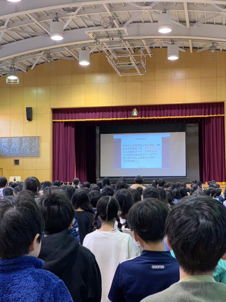 12月23日(土)に2学期の終業式がありました。2学期の頑張りを振り返り、5年生がロボットと一緒に授業をしたように、これから子どもたちが明るい未来に向かっていく話をしました。