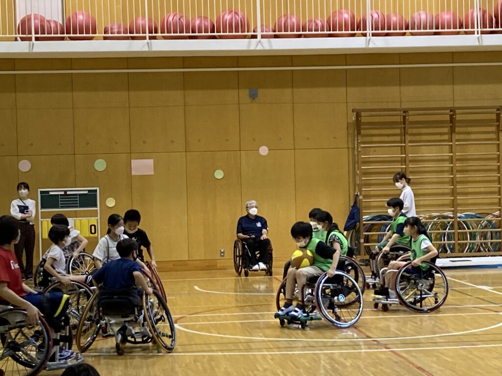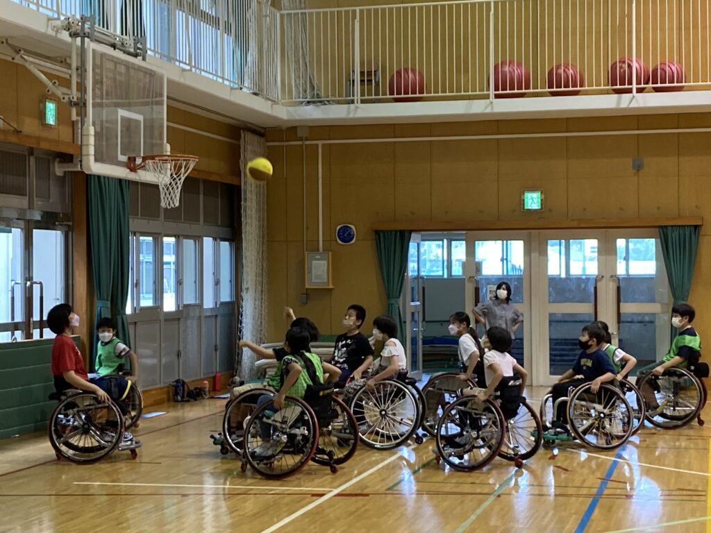 今日は、台風の影響ですっきりしない天気でしたが、楽しい体験学習がありました。車イスバスケットボールGRACEの小田島理恵さん(東京2020パラリンピック代表)にゲストティチャーとして高井戸小に来ていただきました。1人1人が車イスに乗りバスケットの試合を行いました。