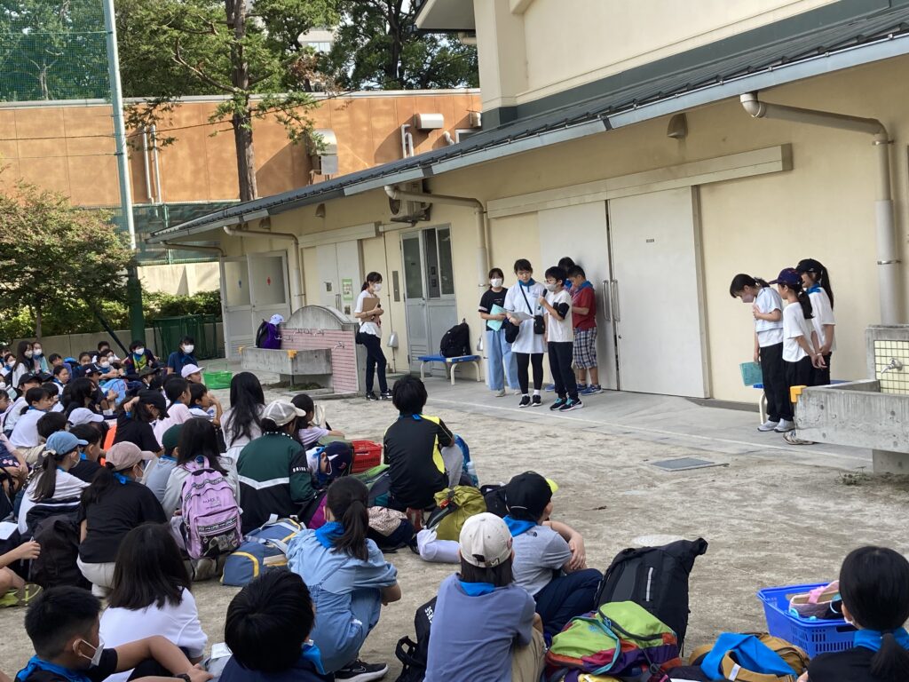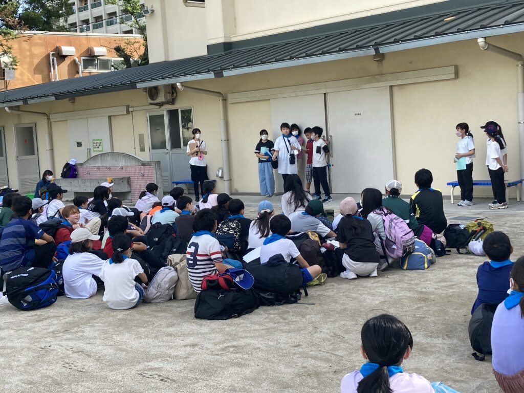 素晴らしい青空のもと、出発式を行い学校をスタートしました。おうちの方や先生方がたくさんお見送りをしてくれました。