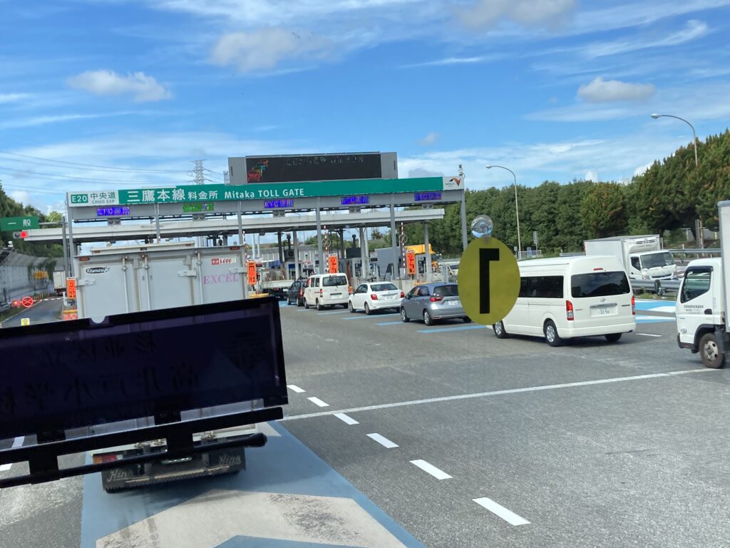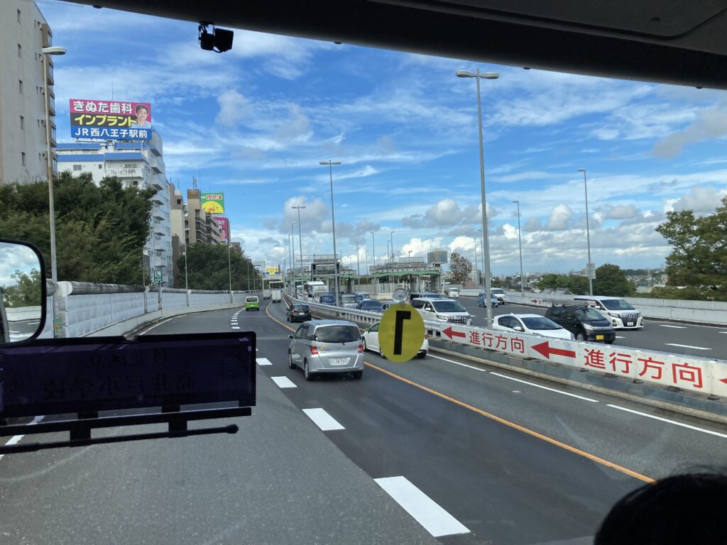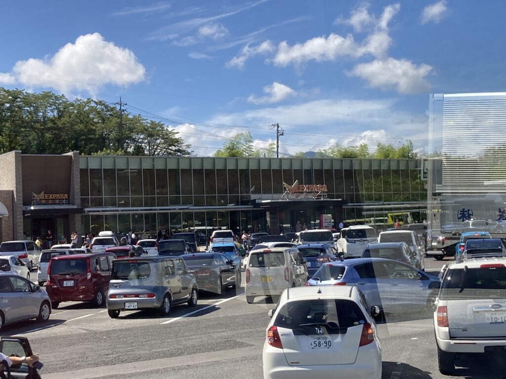 途中から渋滞がありました。談合坂SAでのトイレ休憩を10時過ぎに取り、10時20分に忍野村のほうとうづくりの民宿に向けて出発しました。
