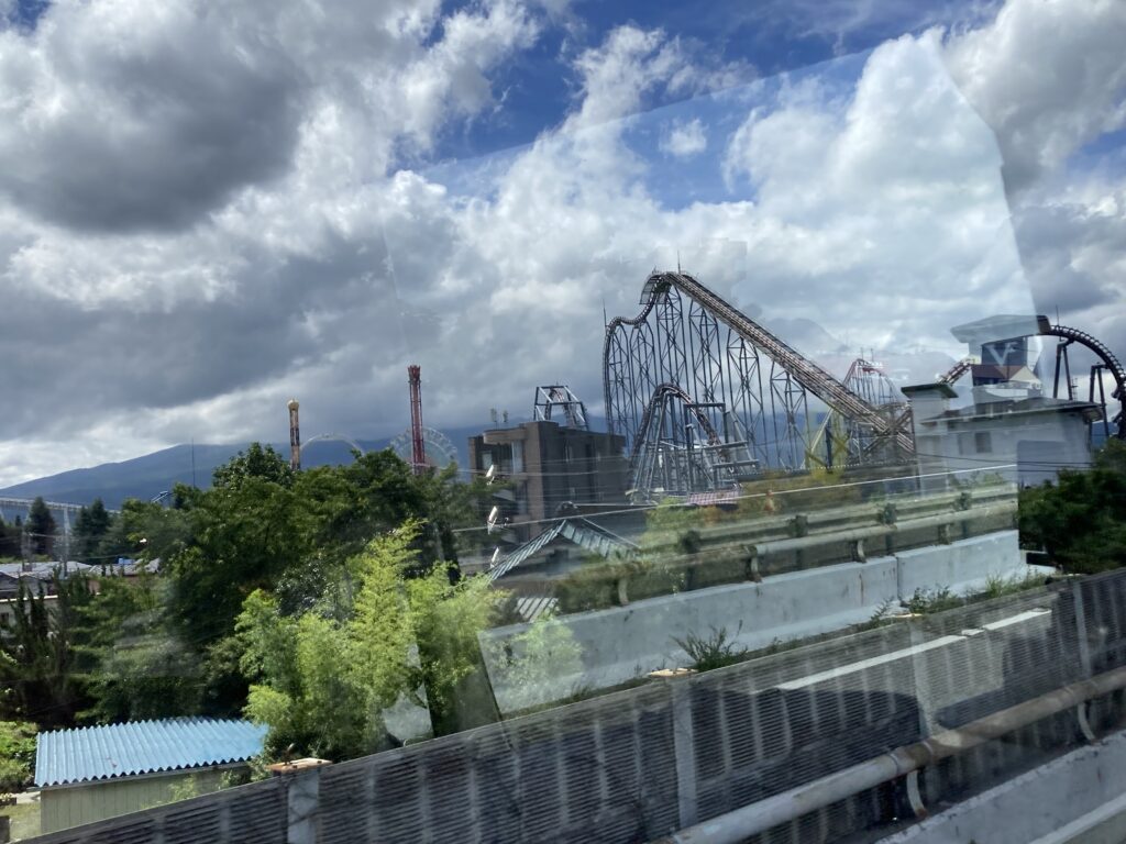 今日は富士山は雲にかくれてみえませんでした。富士急ハイランドが見え、河口湖インターを降りました。