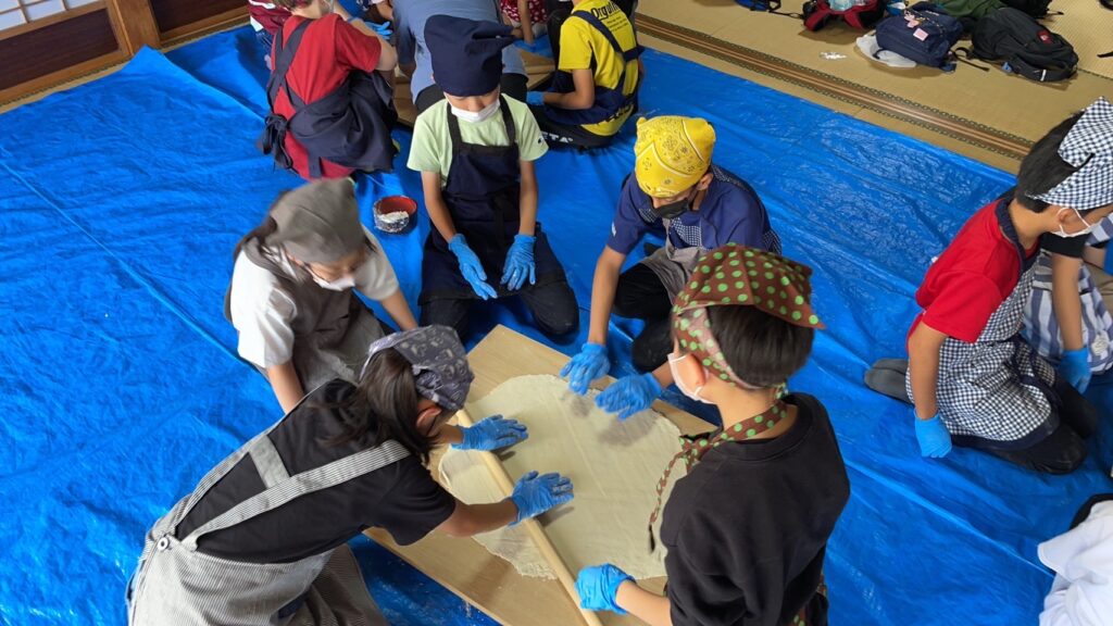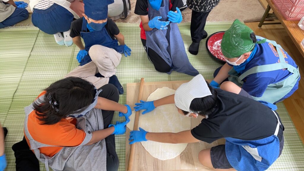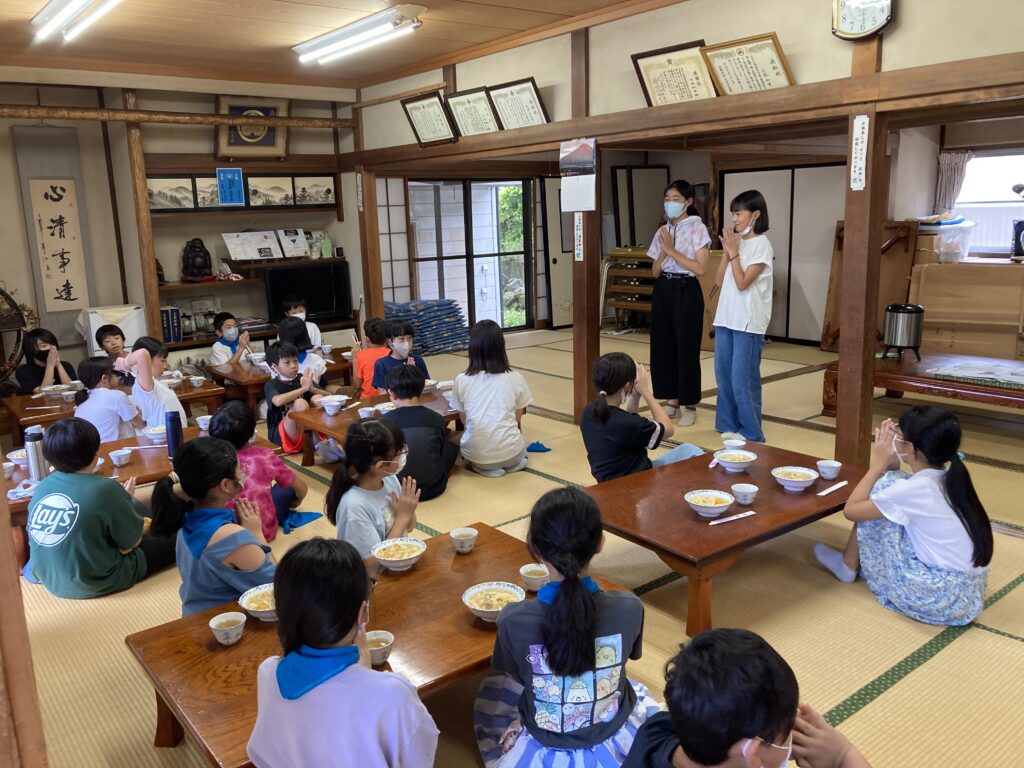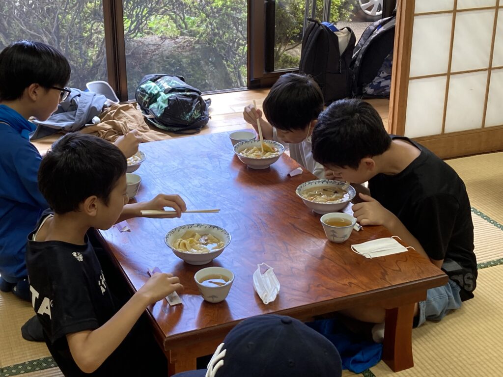 子どもたちが作った麺を民宿の人がほうとうにしてくれました。野菜とお肉の味が出てとてもおいしくおかわりをたくさんしました。