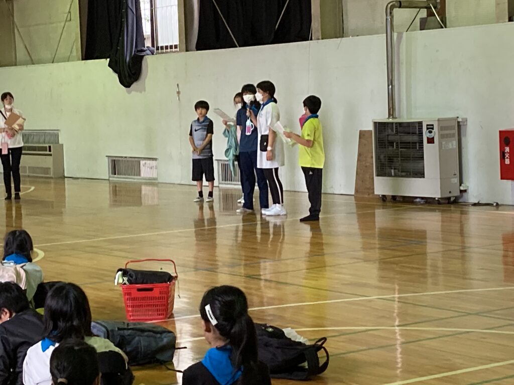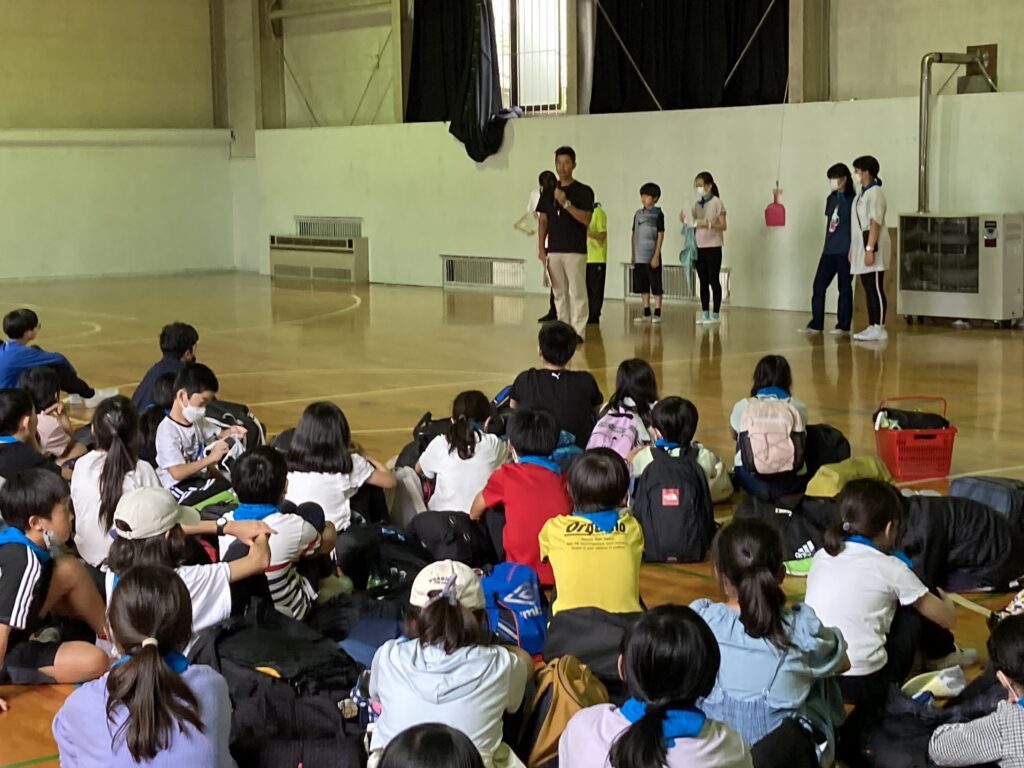 ほぼ予定どおり、宿のスペランザ丸石に到着しました。体育館で開校式を行いました。楽しくて充実した宿泊になりますように。開校式の後、各部屋に入り、避難訓練をしました。