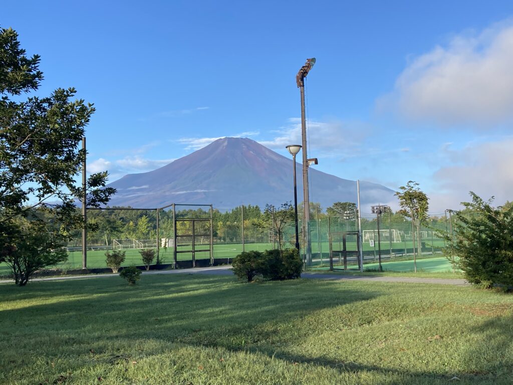山中湖半は爽やかな朝を迎えました。気温は15℃日差しがあるのでそんなに寒くはありません。素晴らしい富士山が宿の玄関から見えました。