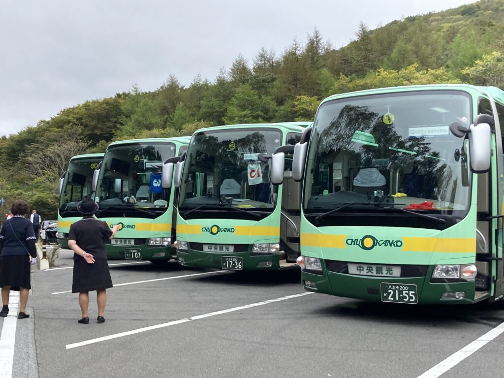駐車場にはお迎えのバスが来ていました。トイレを済ませ、バスに乗って宿舎に戻りました。