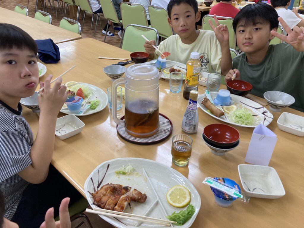 移動教室、最後の夕食です。楽しく食べました。