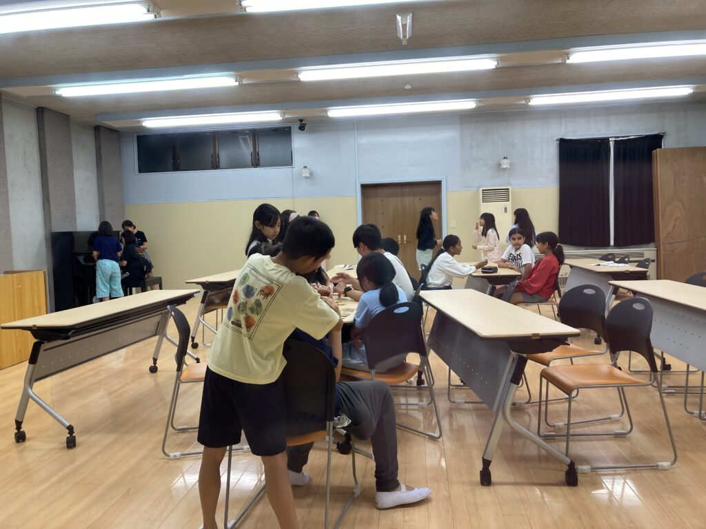 夕食が終わり、19時半過ぎからは、レクリエーションの時間になりました。体育館では鬼ごっこ、バスケット、ドッジボール、フリスビーをしていました。音楽室ではカードゲームピアノをしていました。各部屋では、おしゃべりをしたり、踊ったり自分たちで好きなことを決めて楽しむ様子が見られました。