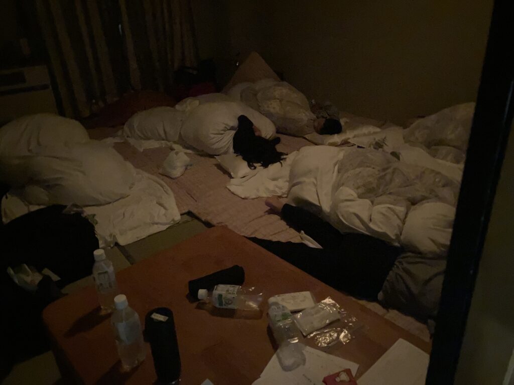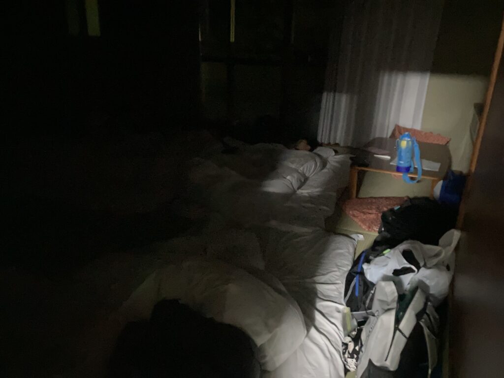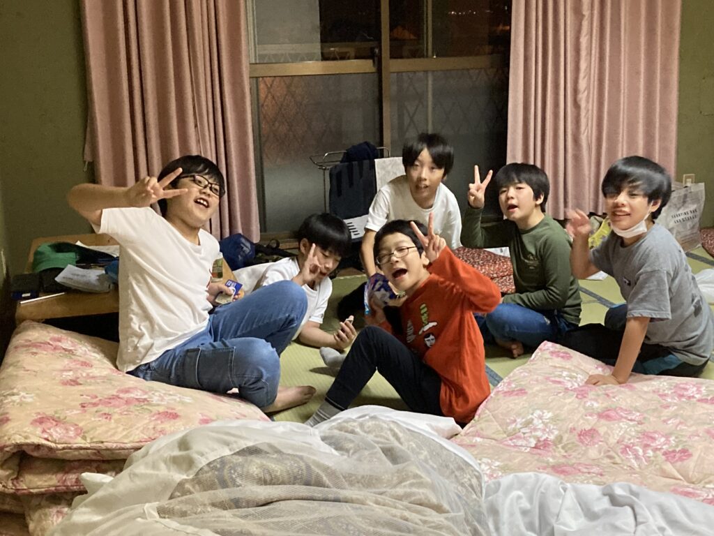昨夜と違い21時半の消灯から少しずつ静かになり22時50分には、部屋からいびきが聞こえていました。昨日の疲れと今日のハイキング、レクリエーションとたくさん活動し今日はぐっすりです。