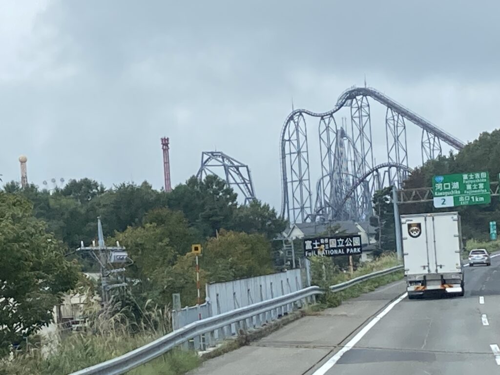10時半前に河口湖ICから一般道におりました。ほうとうづくりの民宿に向かいます。富士急ハイランドが見えました。