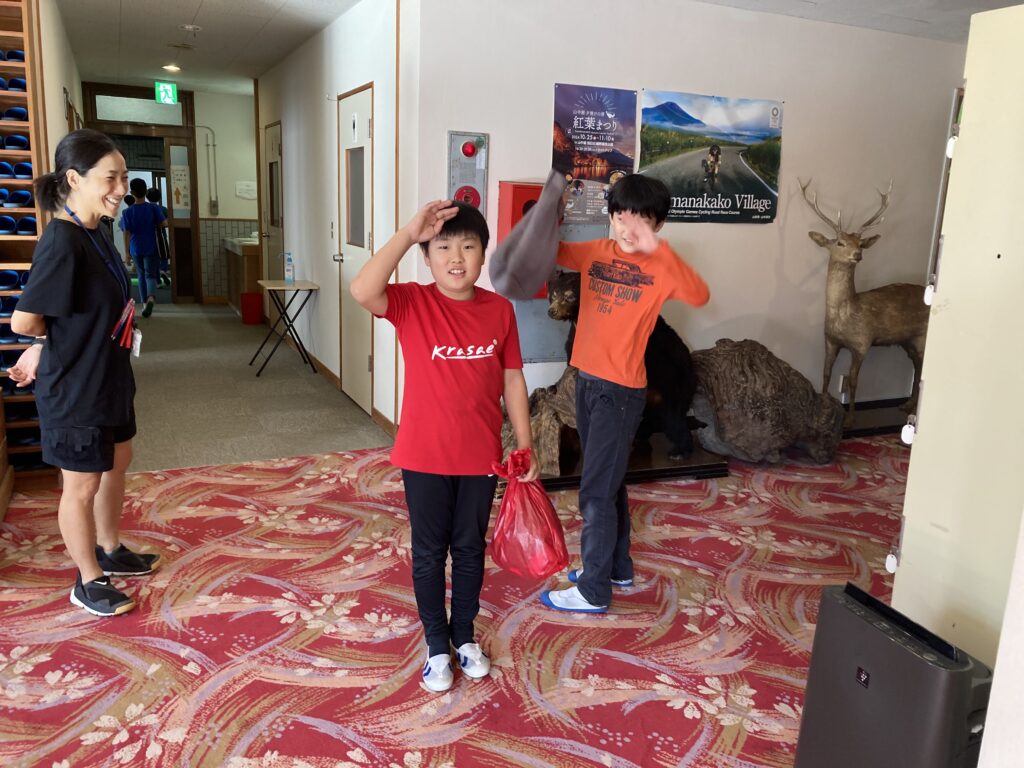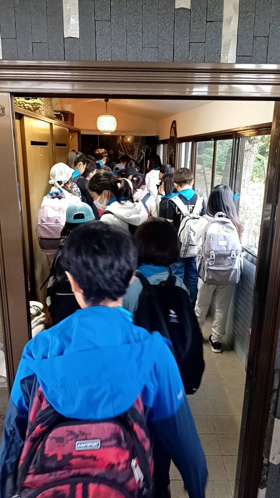 忍野八海は、インバウンドのお客さんで大変混んでいました。迷子になるおそれもあったため早めに池をまわり、宿舎のスペランザ丸石に向かいました。14時過ぎに宿舎に着き、宿舎の体育館で開校式を行いました。