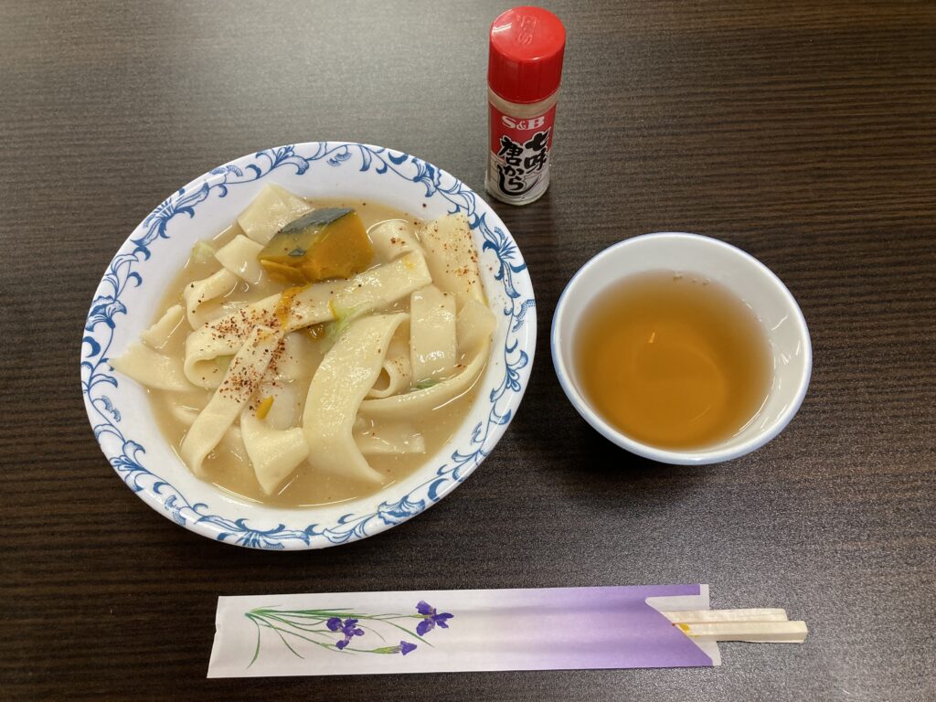 民宿のご主人がかぼちゃ、ジャガイモ、白菜、豚肉の入ったおいしいほうとうに仕上げてくれました。