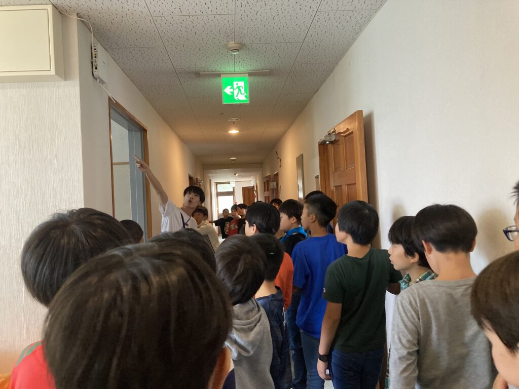 その後、自分たちの生活班の部屋に入り、避難訓練を行いました。