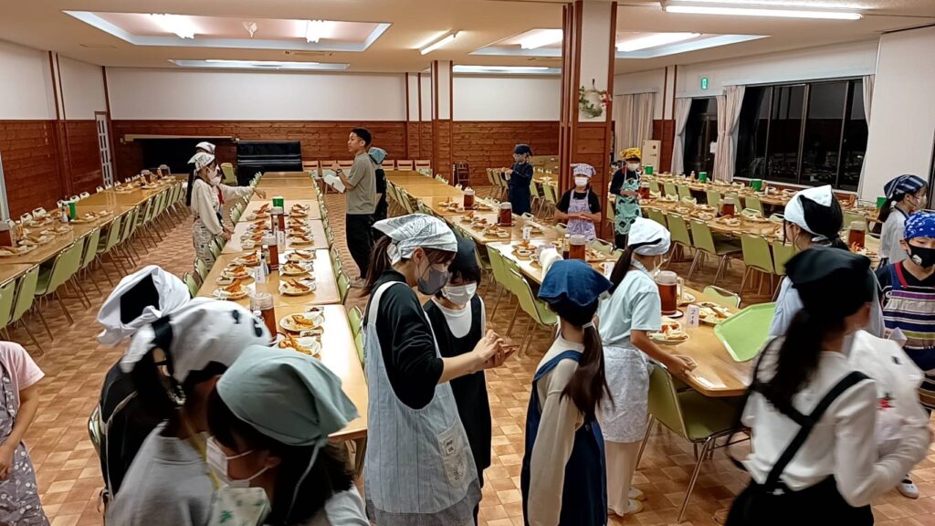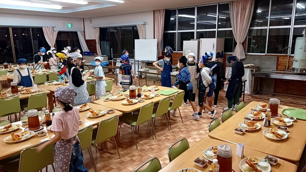 夕食準備の時間になりました。食事係が懸命に仕事をし、夕食時間に間に合わせみんなから拍手が起こりました。