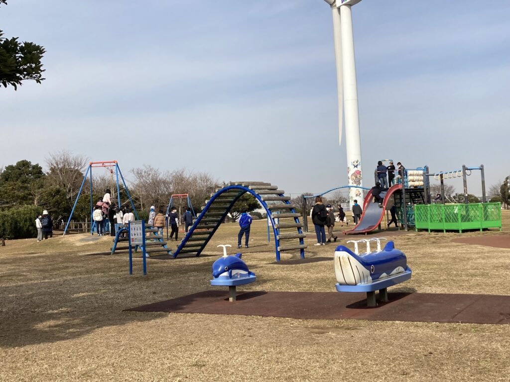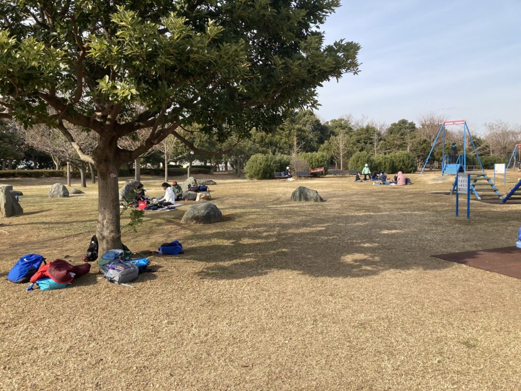 若洲海浜公園では、ゲートプリッジなどの湾岸エリアの様子を見ながら、お弁当を食べ、青空の下、学級で思いっきり体を動かす活動をしました。
