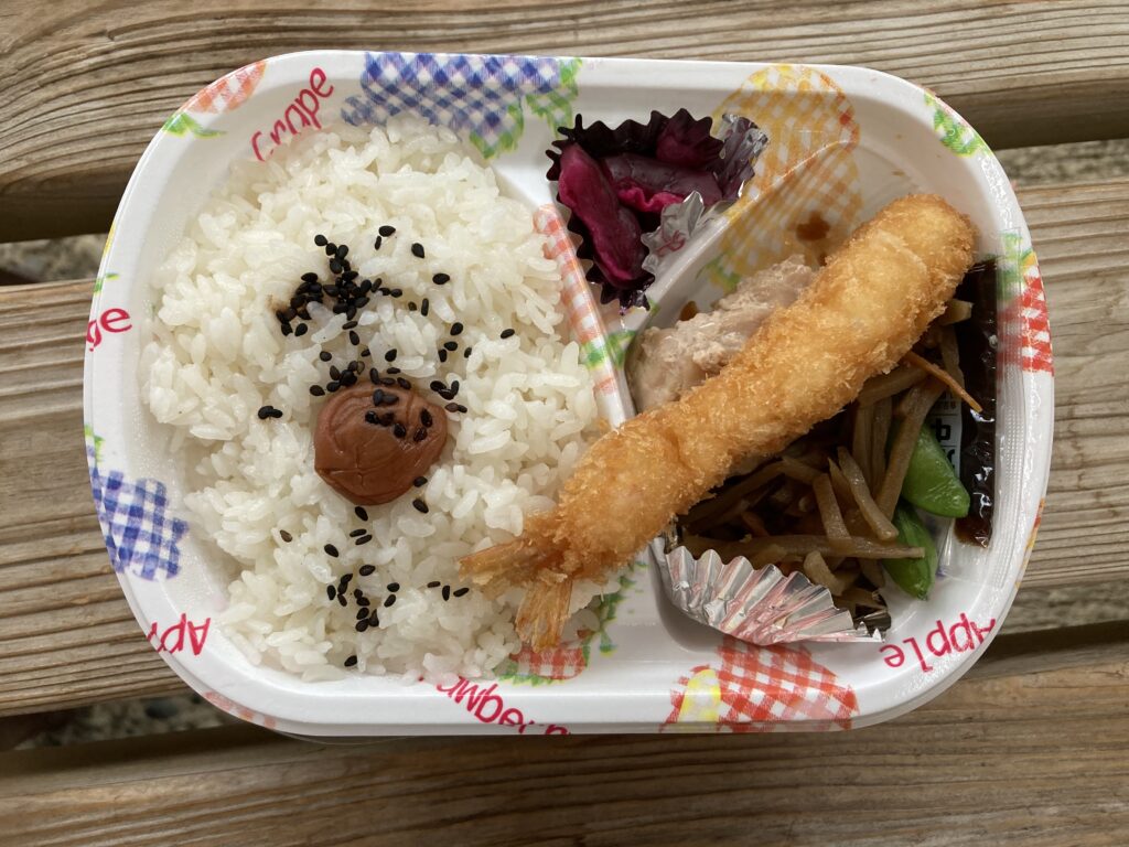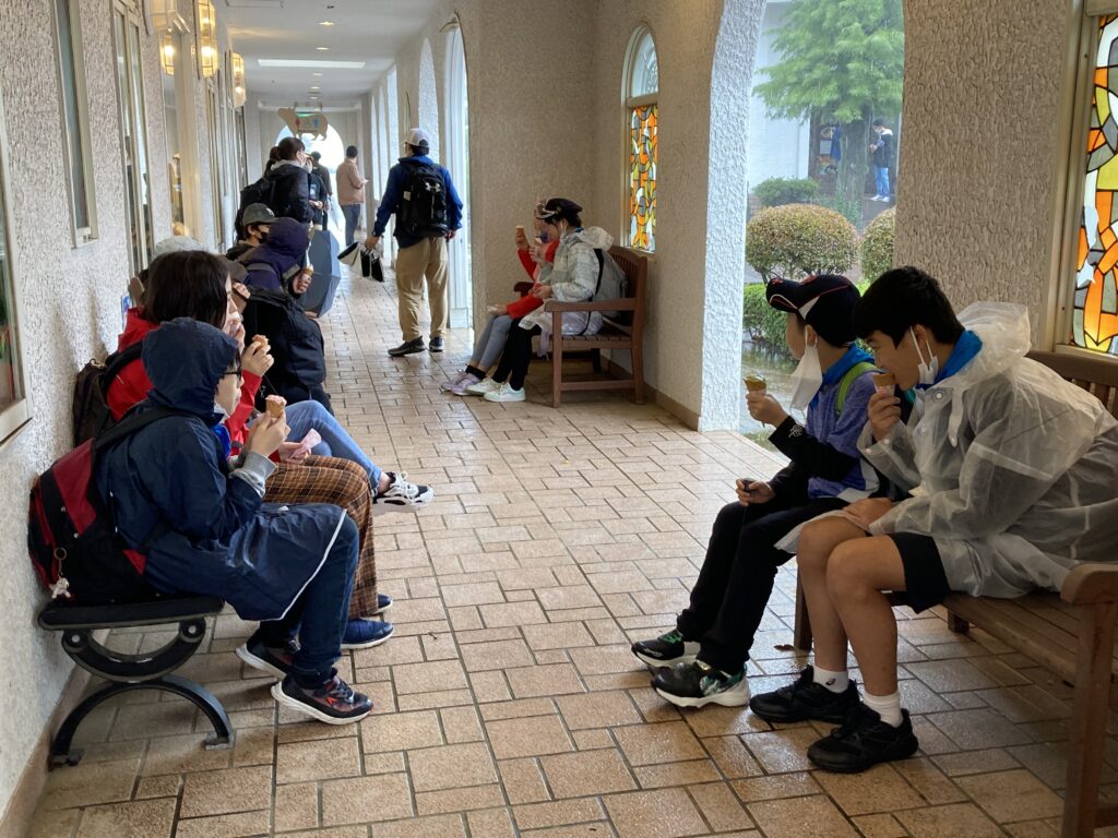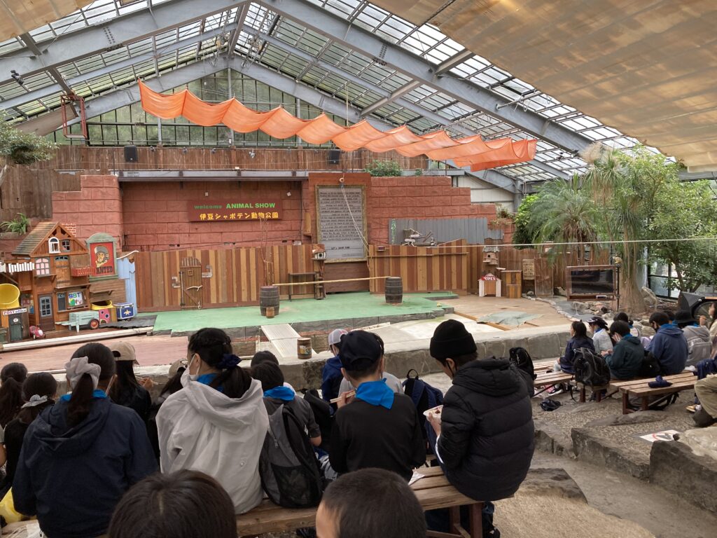 お昼はショーをやる建物の中でお弁当を食べました。
