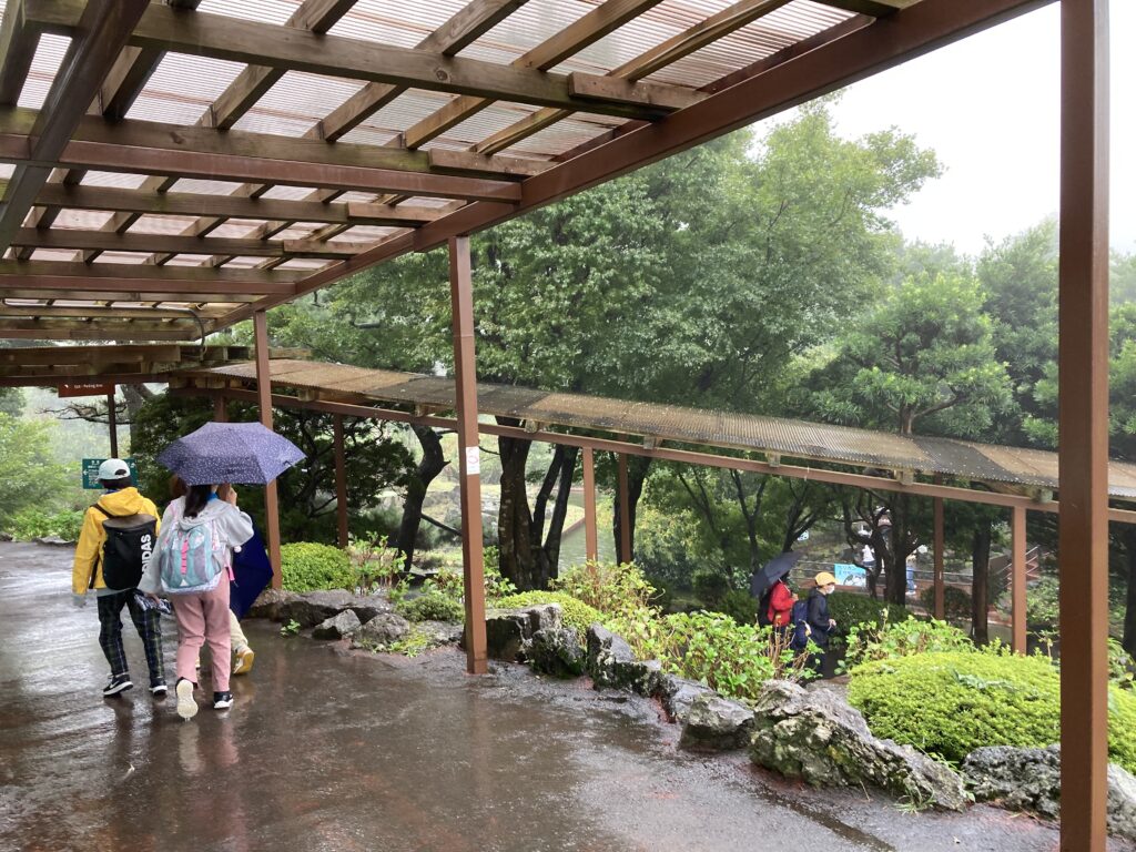 雨の中の見学です。