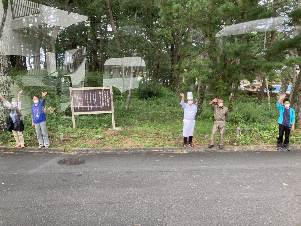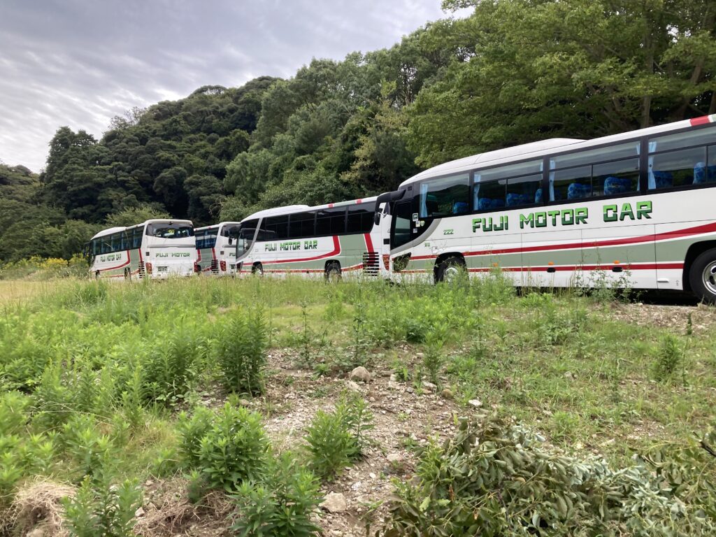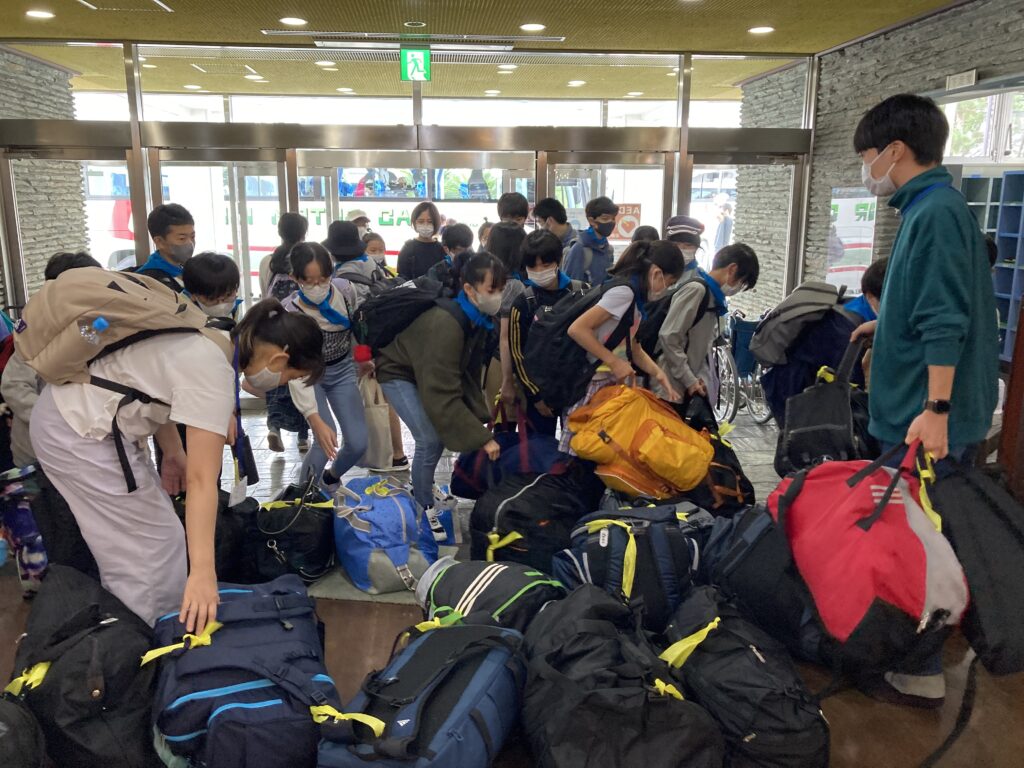 大リュックをバスに積み込みバス4台で出発しました。弓ヶ浜クラブの方々がお見送りしてくださいました。