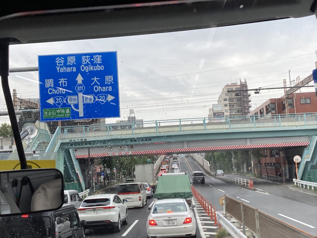 16時15分甲州街道の高架です。渋滞中です。少し遅れます。