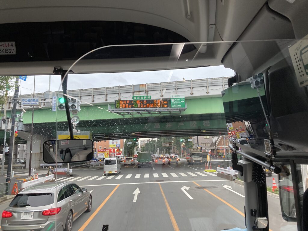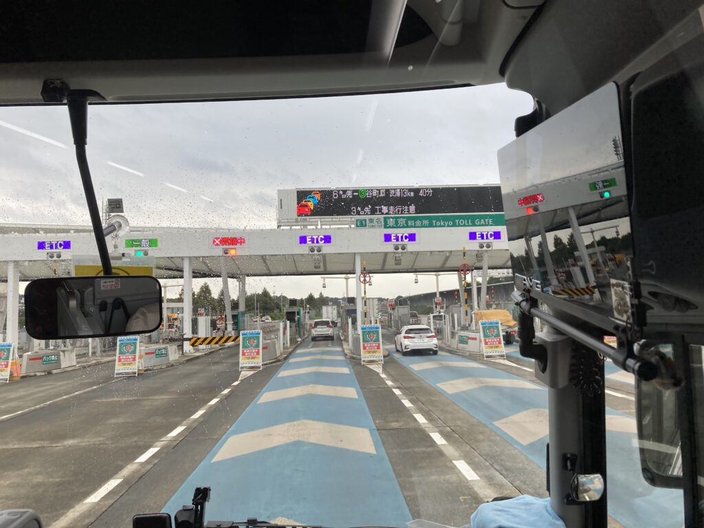 東京料金所を15時50分通過しました。環八の混み具合にもよりますが予定通り16時20分位の帰校になりそうです。