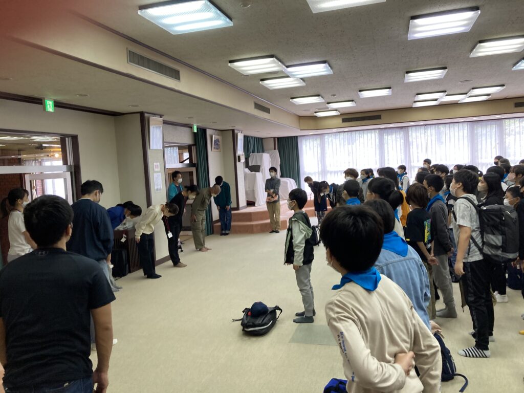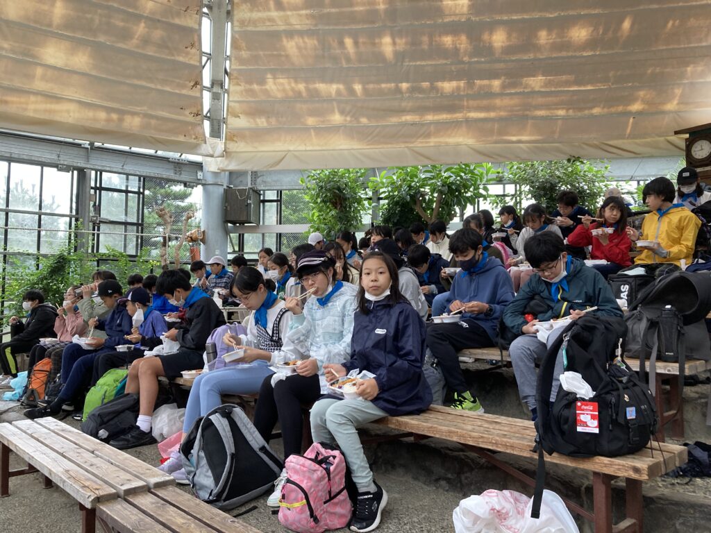 宿舎での最後の朝食です。食事係も準備がどんどん早くできるようになり進行にゆとりができました。お疲れさまでした。