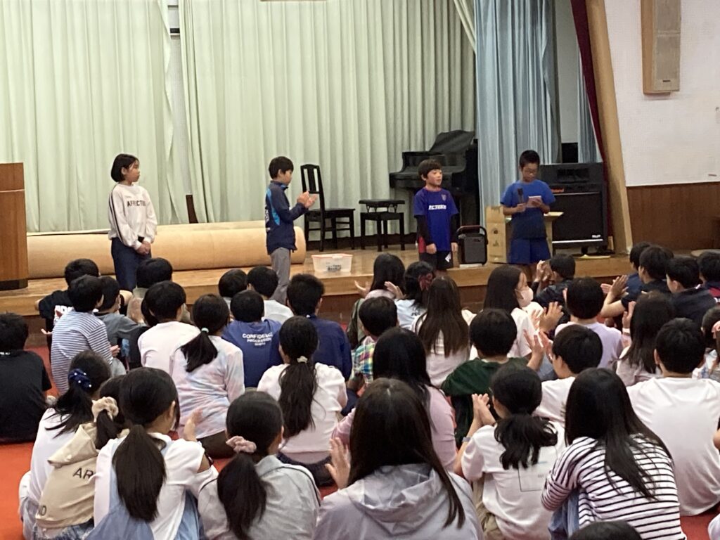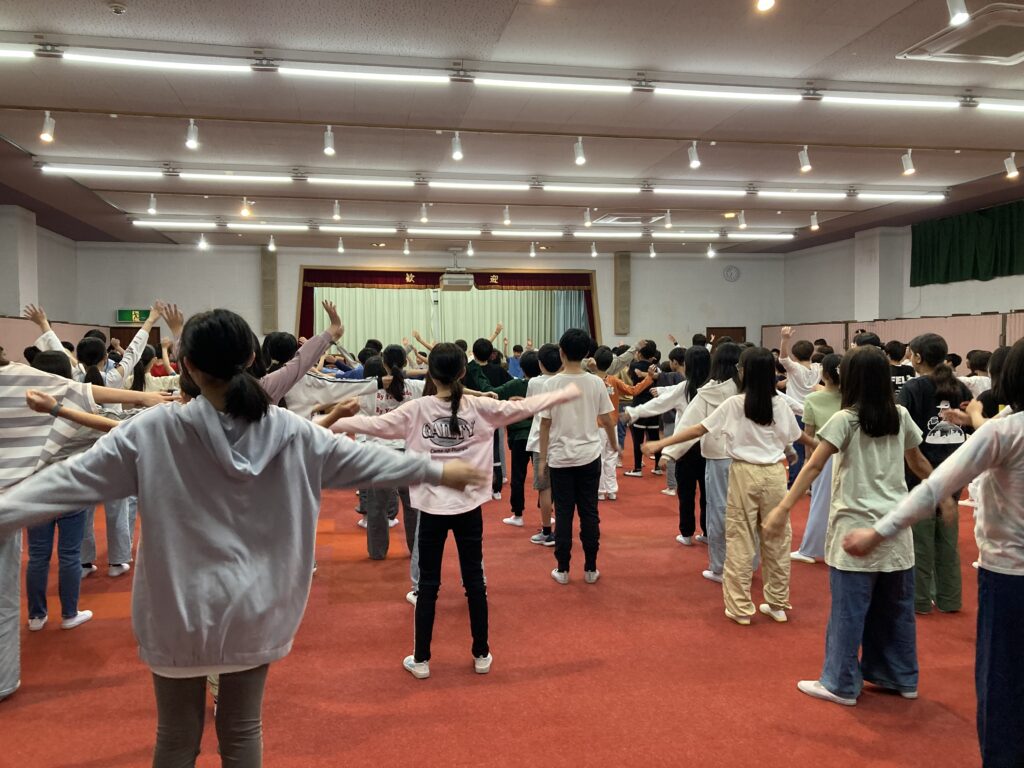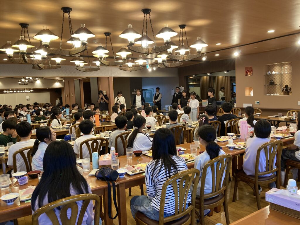 6時50分からは、コンベンションホールで朝会を行いました。5分前集合の生活班が増え、明るい挨拶で始まりました。
