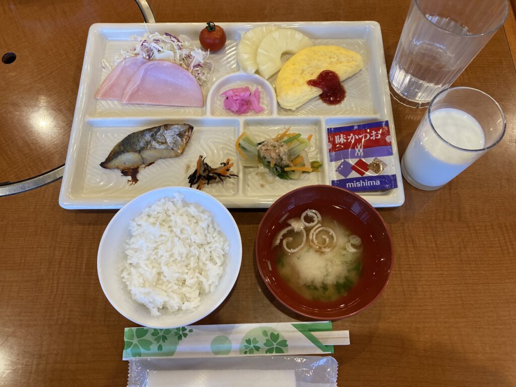 食事係さんが頑張ってくれたおかげで5分早い朝食になりました。